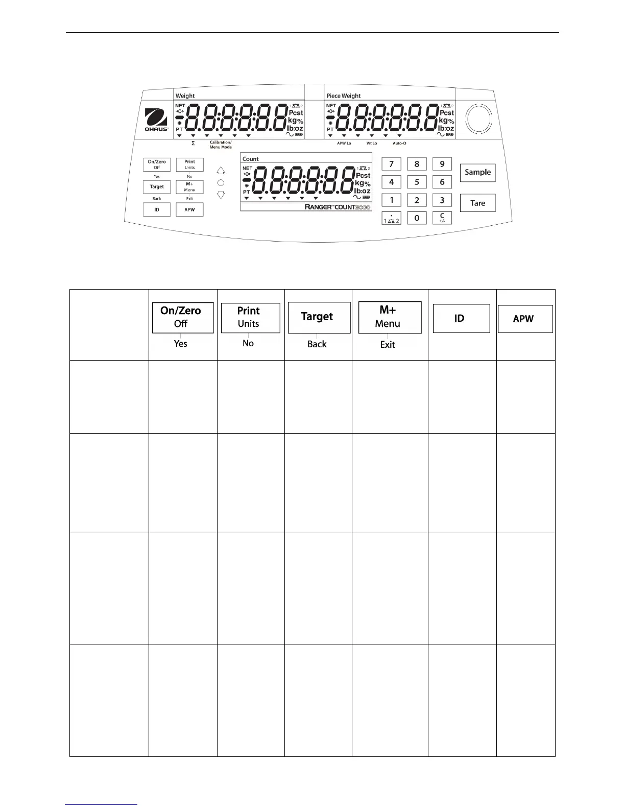 OHAUS RC31P6 - 3. OPERATION; 3.1 Control Panel Overview; Control Button Functions