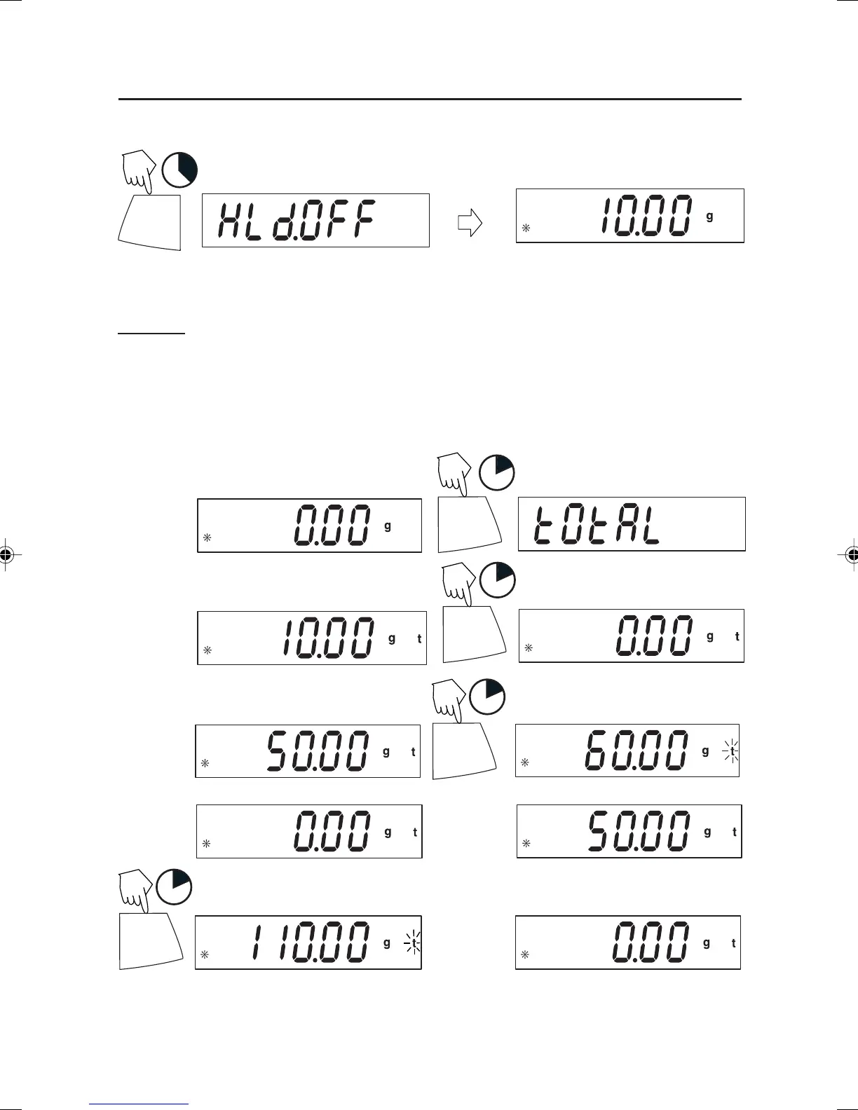 been initiated when t and the current unit, i.e. (g) is displayed. When total weight is