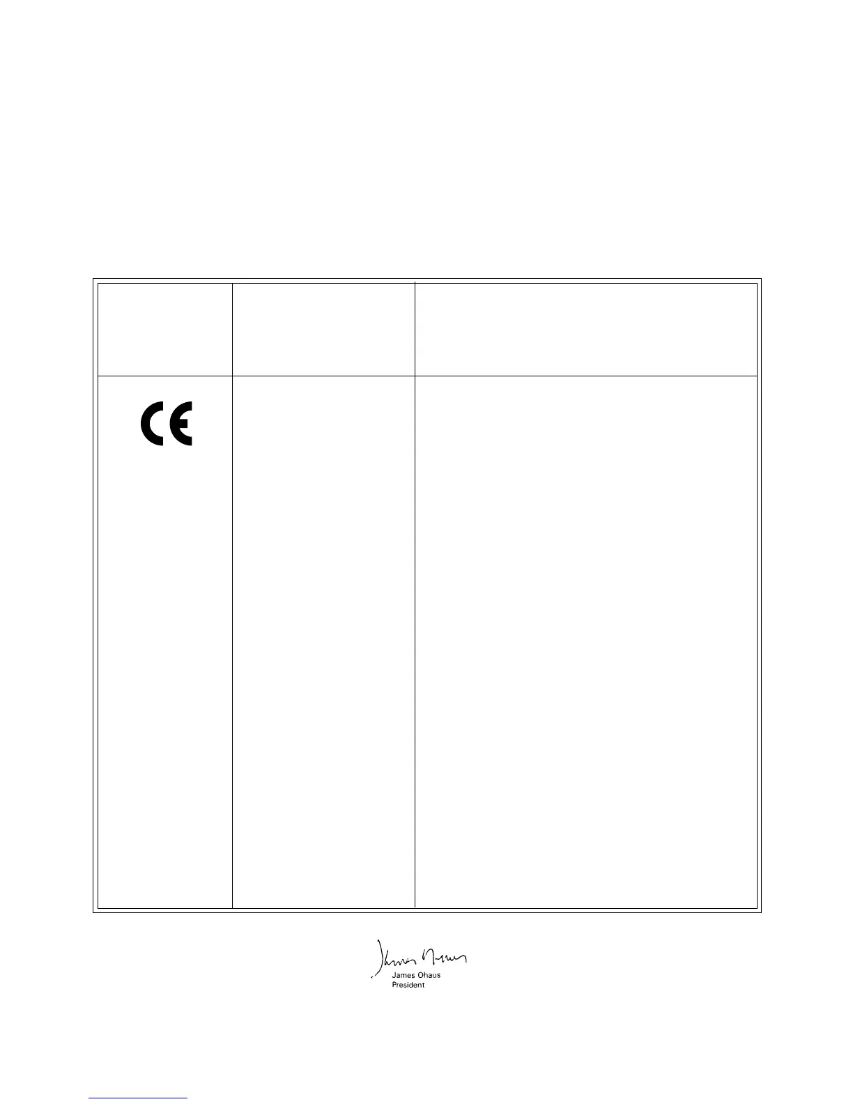Declaration of Conformity We, Ohaus Corporation, declare under our sole responsibility that the instrument models listed below marked with “CE” - are in conformity