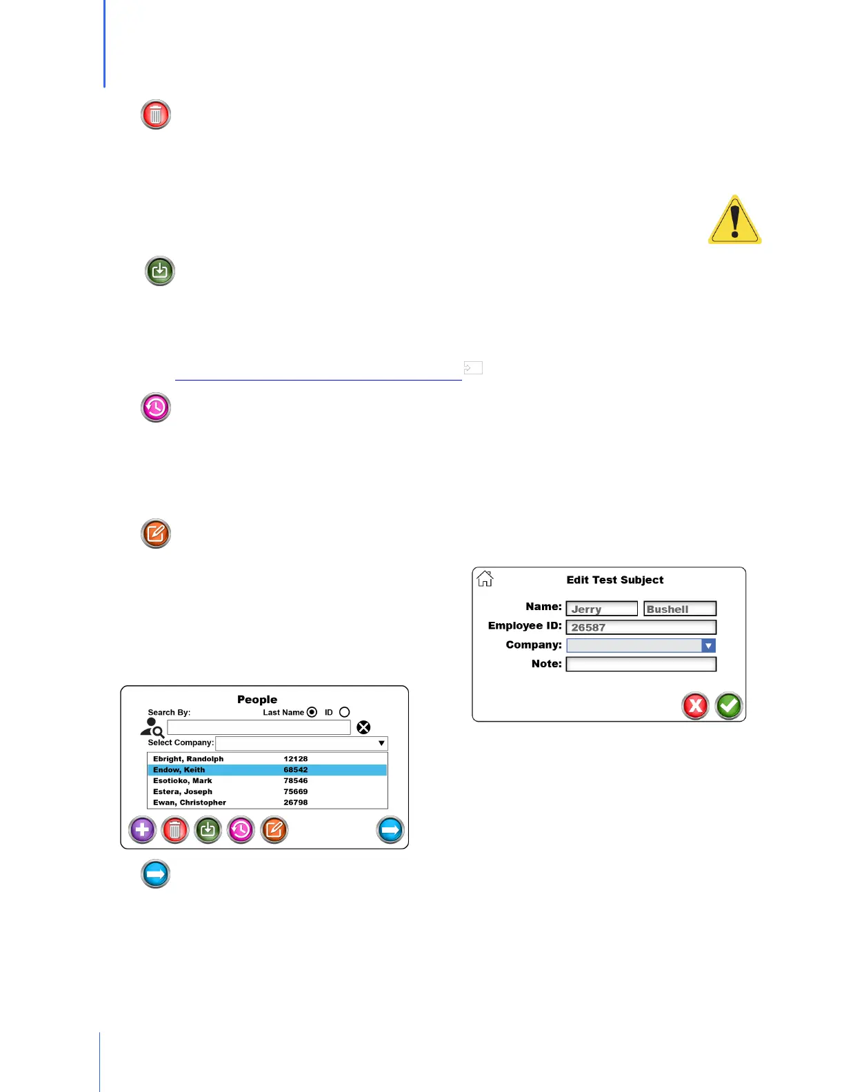 o When a test subject is selected, press on this icon to delete this person from the instrument.