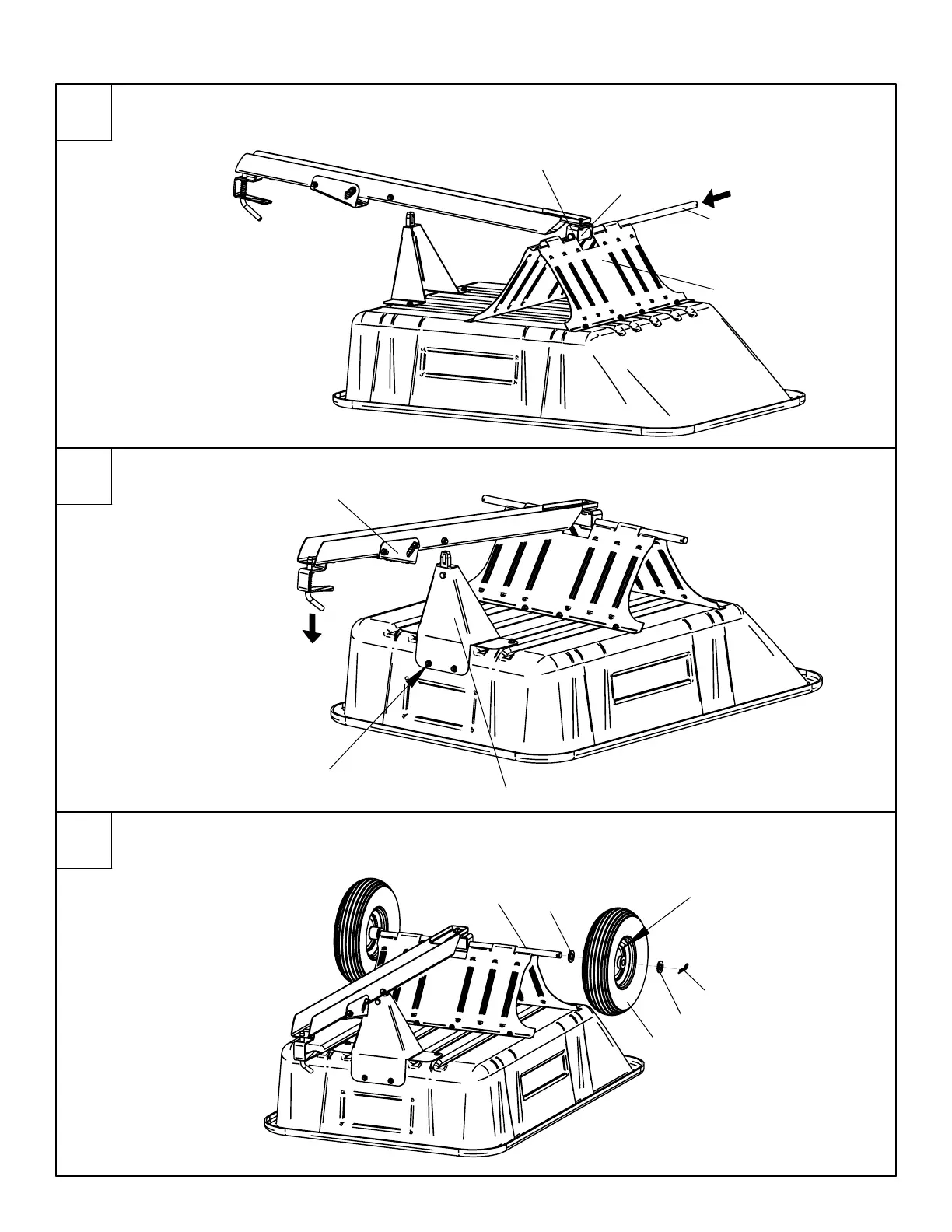 Faire glisser les rondelles (24) et les roues (20) sur l’essieu (4), puis fixer avec les