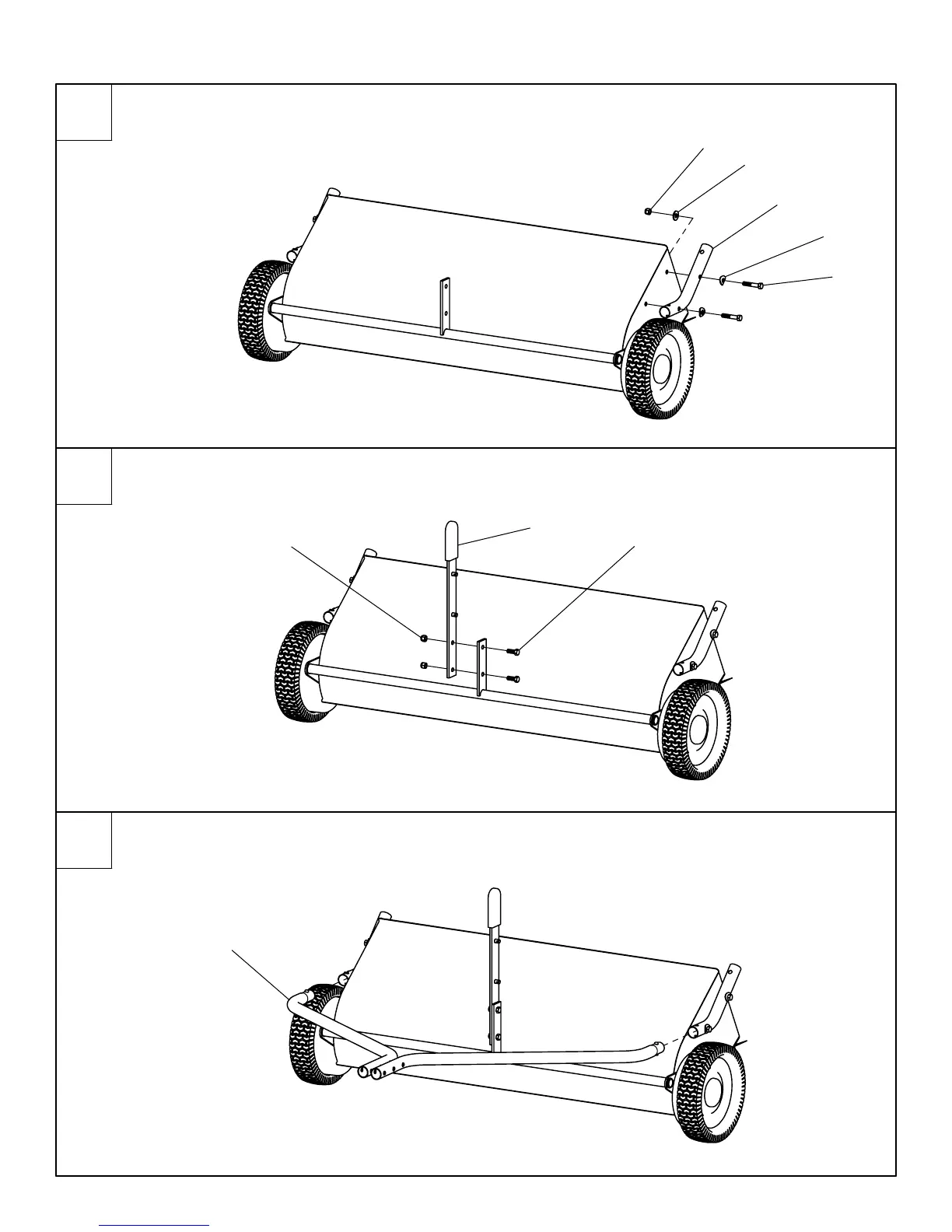 Attach Short Hitch Tubes to Sweeper Assembly and tighten hardware.