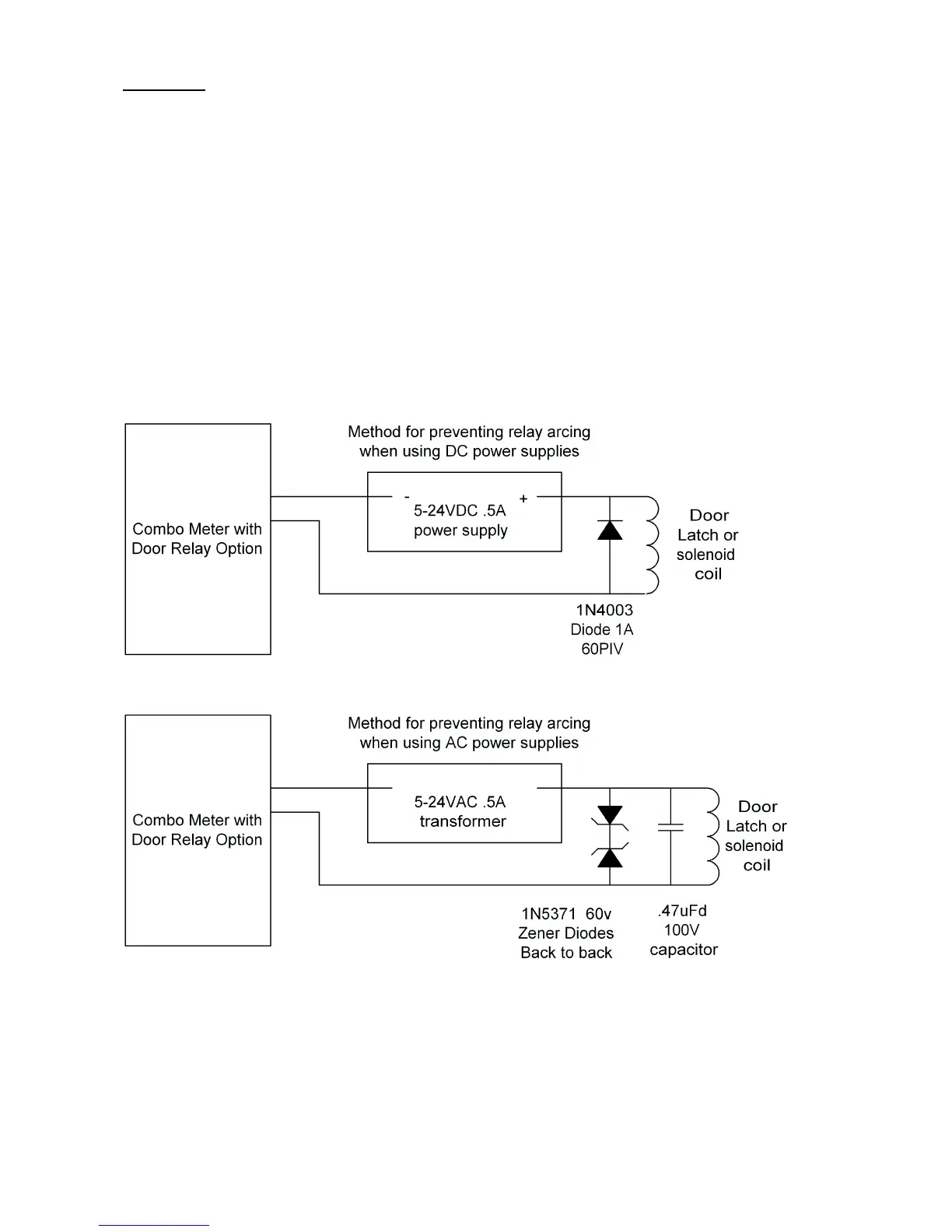 To prevent relay contact arcing if the contact current is AC, then two zener diodes back to back (band to band) may be wired across