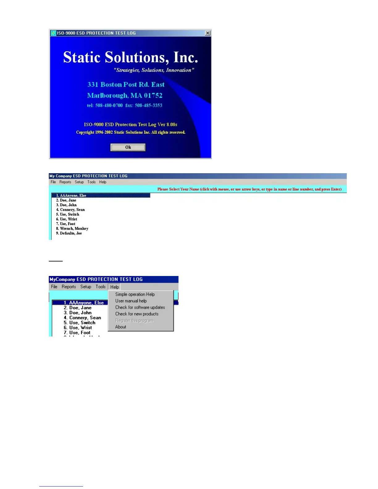 5. “About” lists the EsdTest program version numberon the window shown at the top of this page.