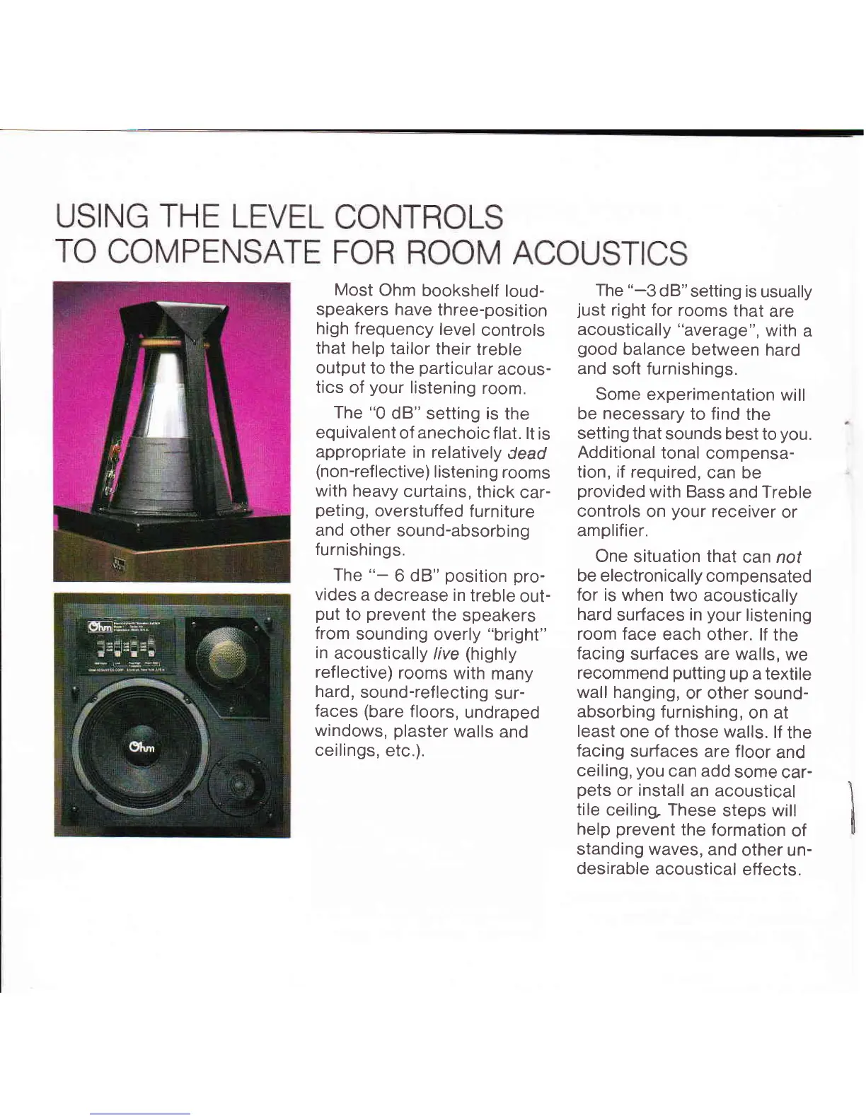 OHM C2 - USING THE LEVEL CONTROLS TO COMPENSATE FOR ROOM ACOUSTICS; High-Frequency Level Controls; Room Acoustic Compensation