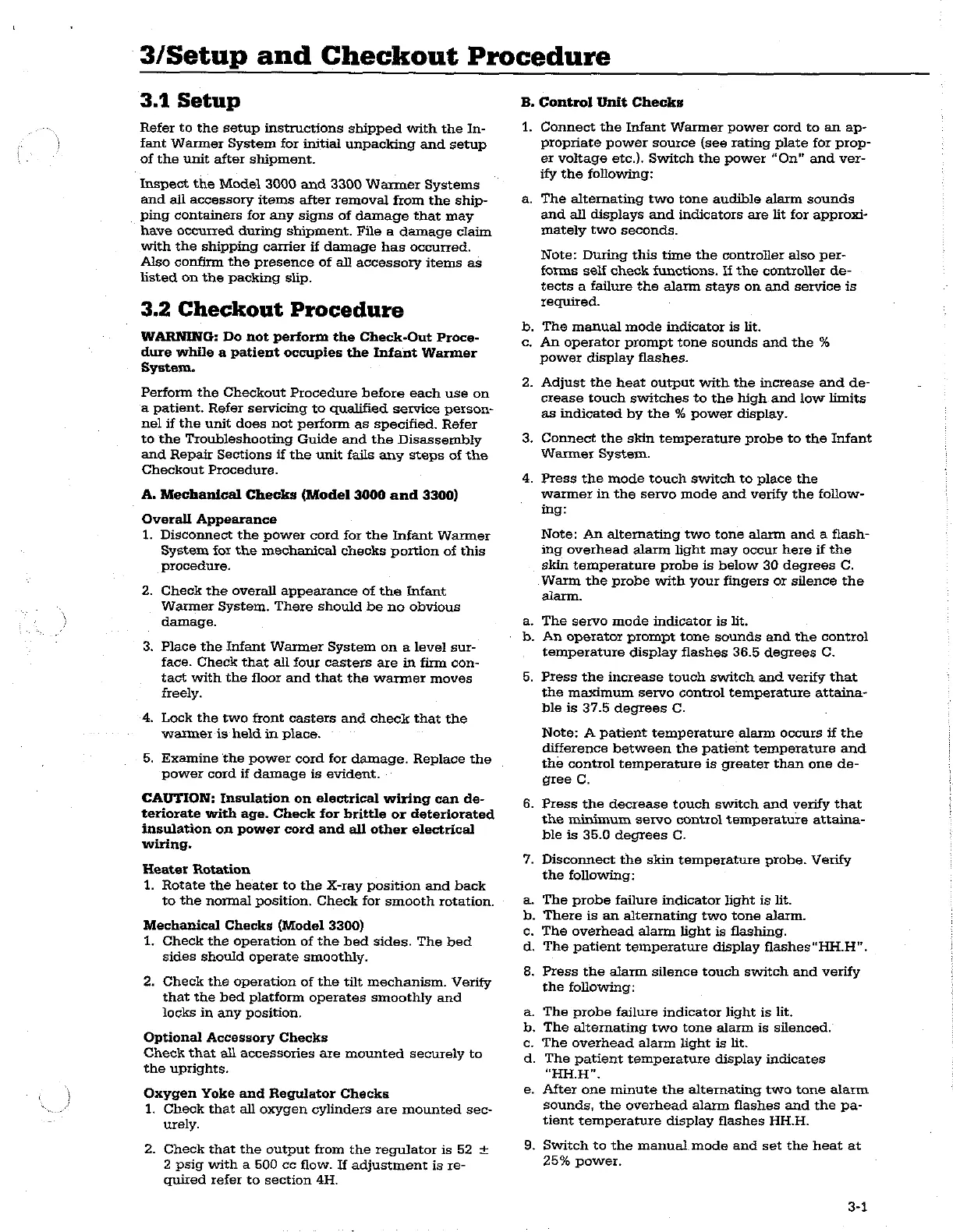 Ohmeda 3000 - Setup and Checkout Procedures; Unit Setup; Checkout Procedure