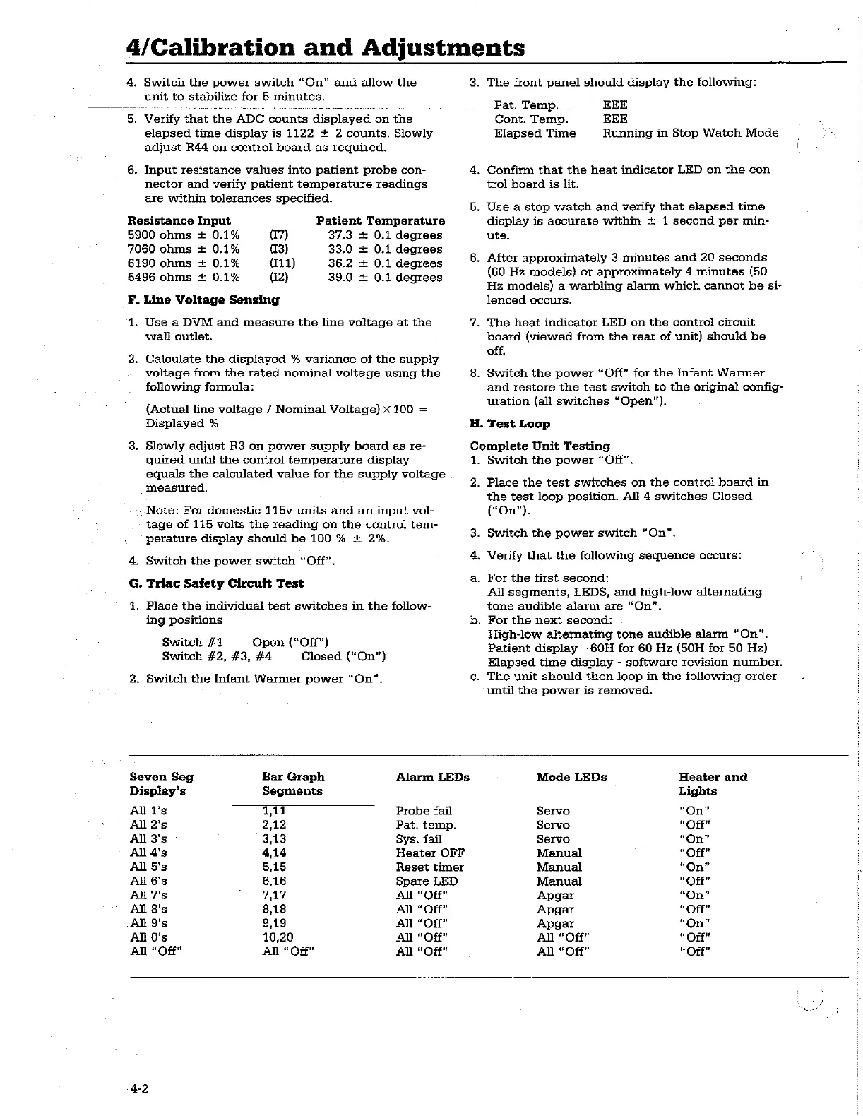 Ohmeda 3000 - Analog to Digital Converter (ADC) Calibration; Line Voltage Sensing and Triac Safety Test; Test Loop Procedure