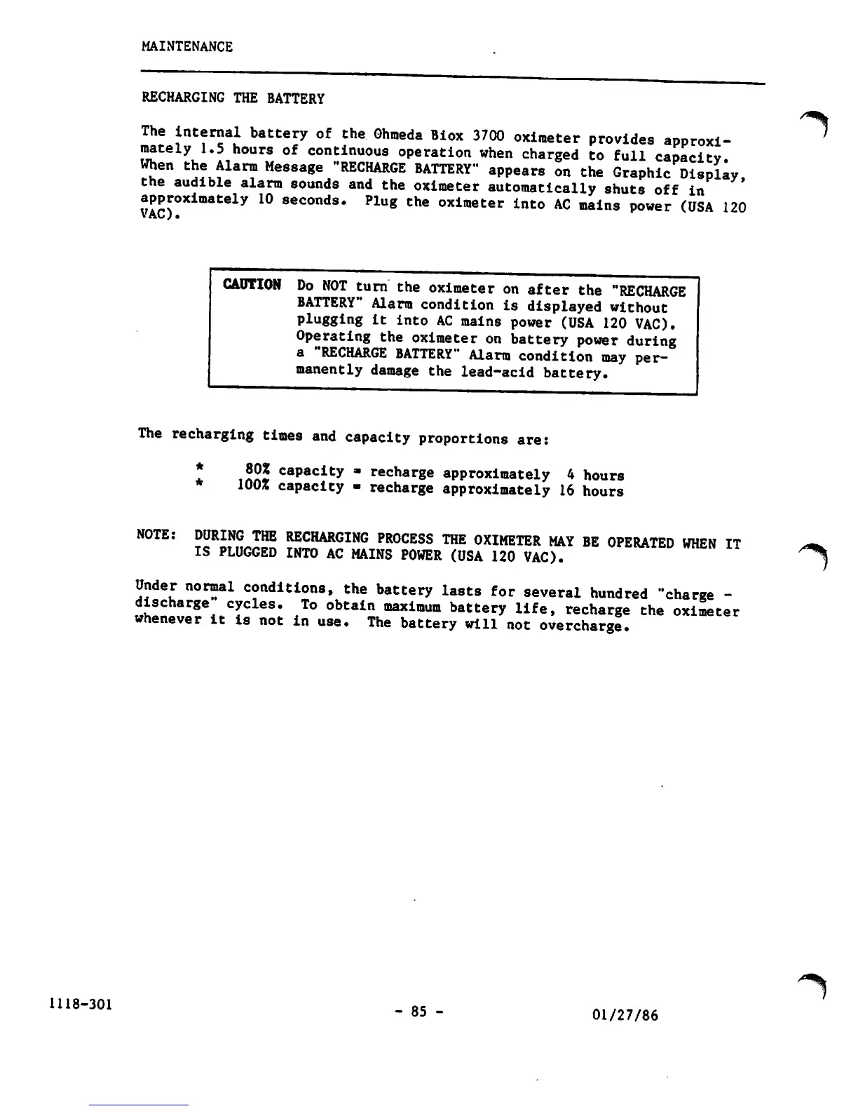 Ohmeda Biox 3700 - Battery Recharging and Calibration