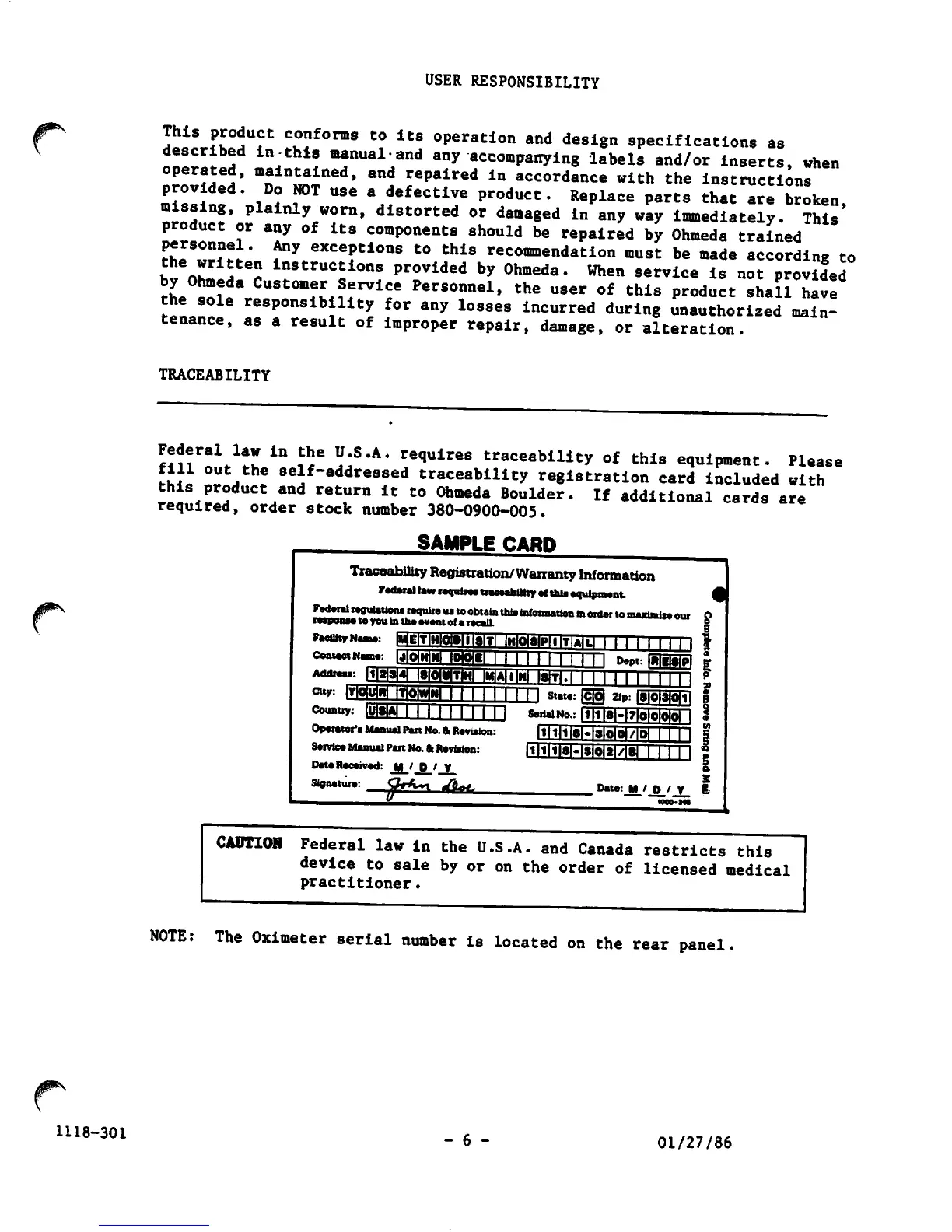 USER RESPONSIBILITY