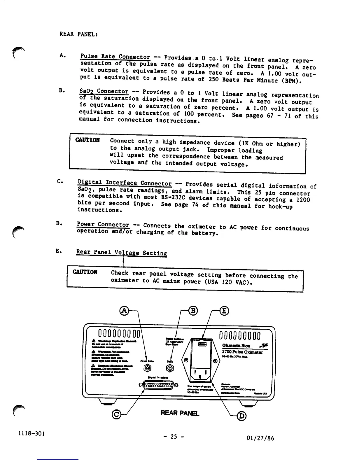 Ohmeda Biox 3700 - Rear Panel