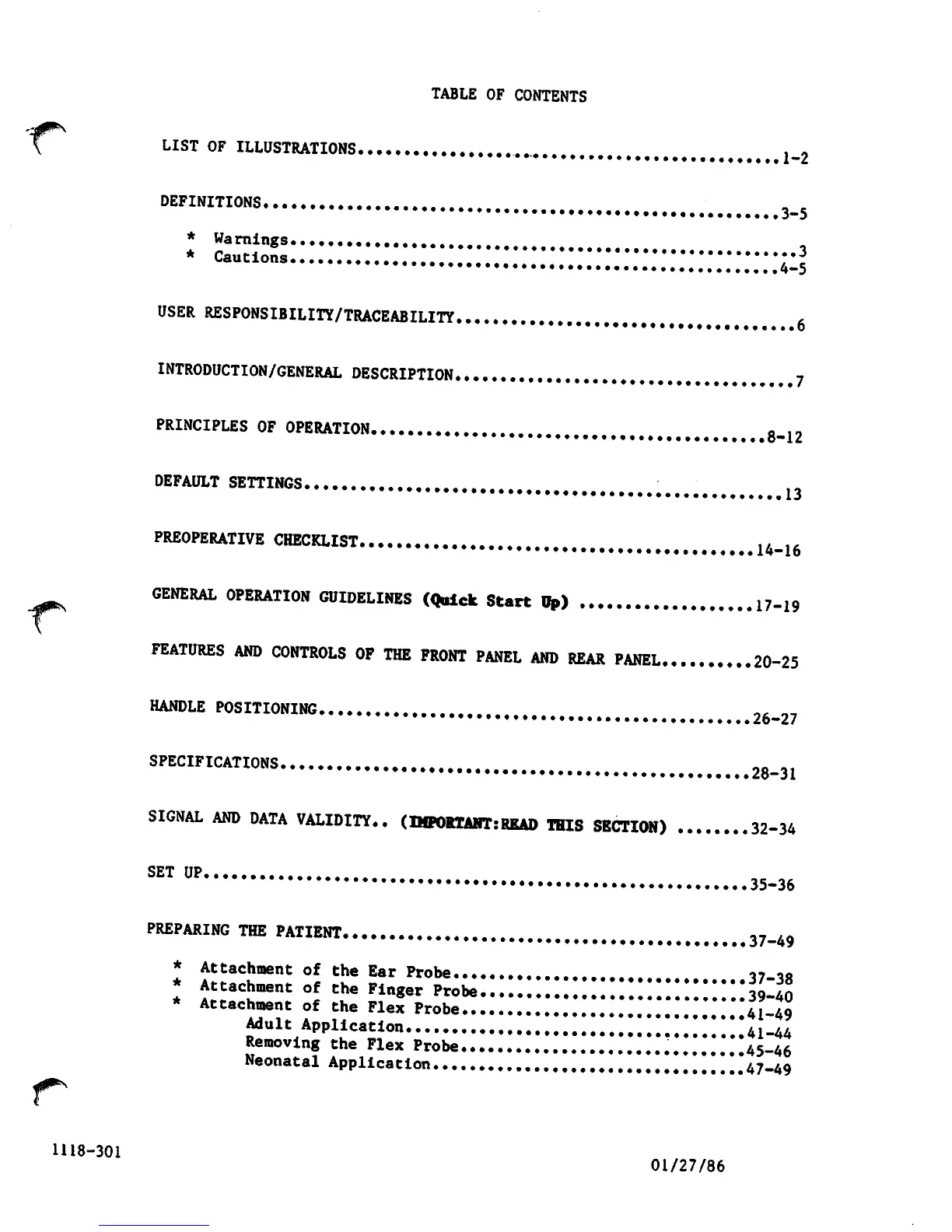 Ohmeda Biox 3700 - Table of Contents