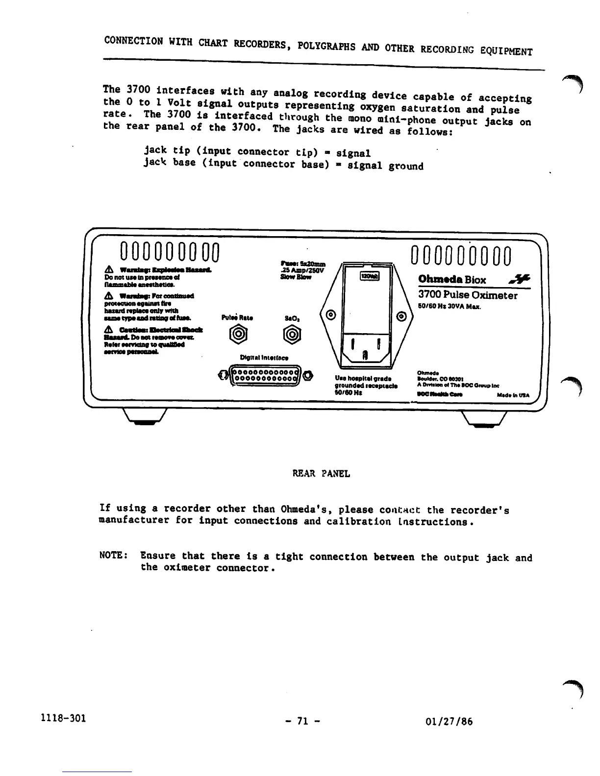 Ohmeda Biox 3700 - Analog Output of Trend Data