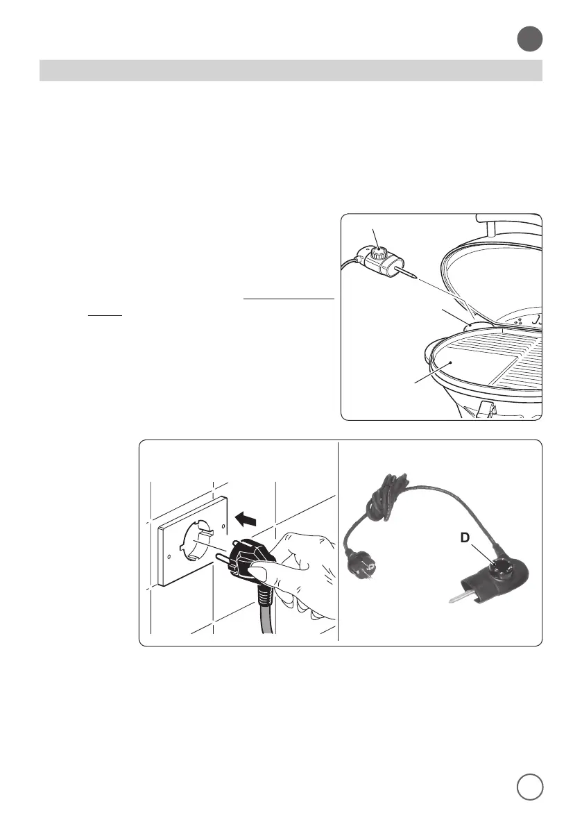 - Brancher le thermostat (D) dans la prise