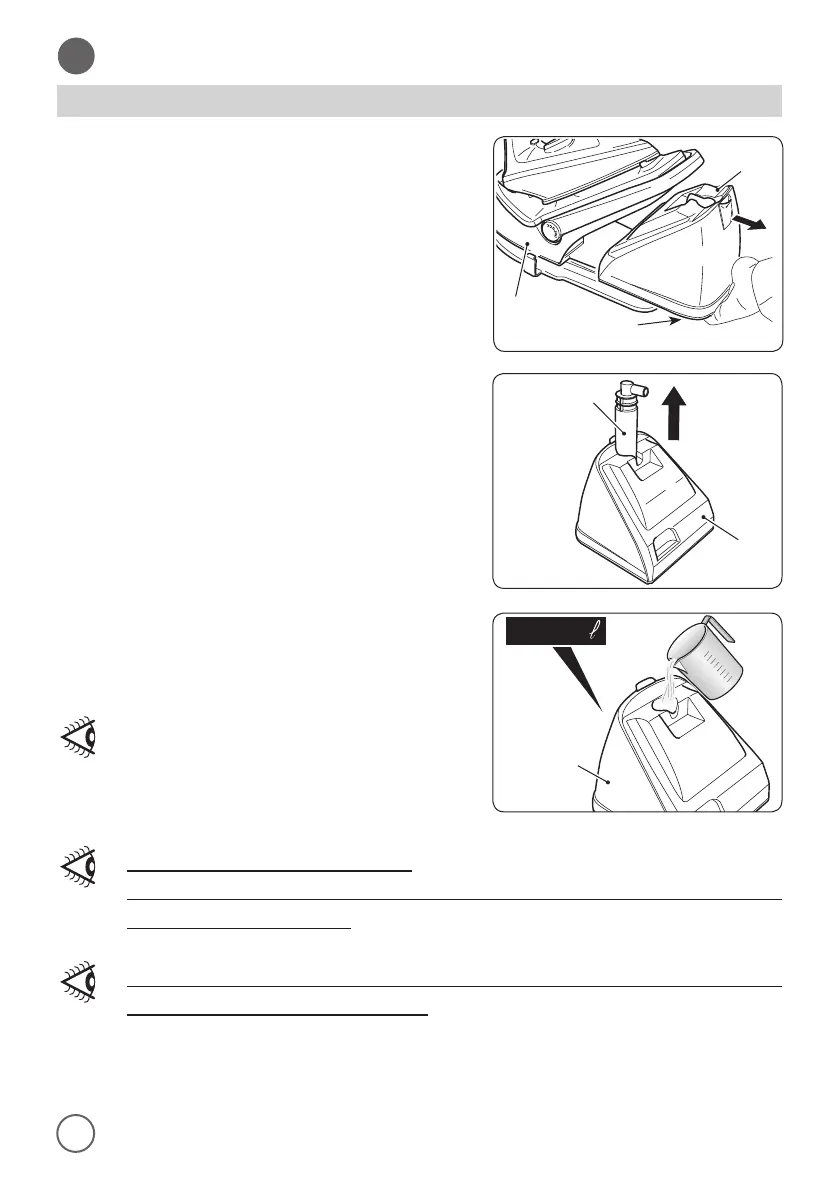 • Pour water in the tank (2) until you reach the