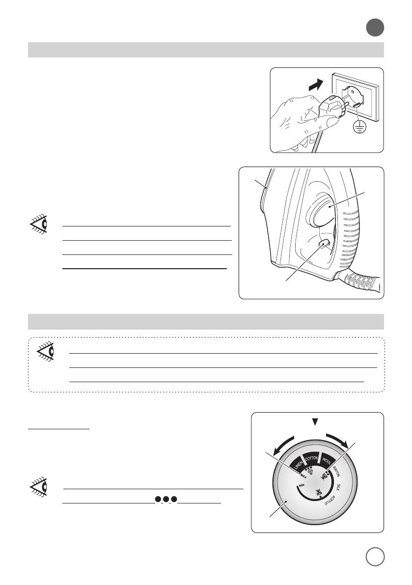 • Turn the thermostat knob (11) to select an ironing