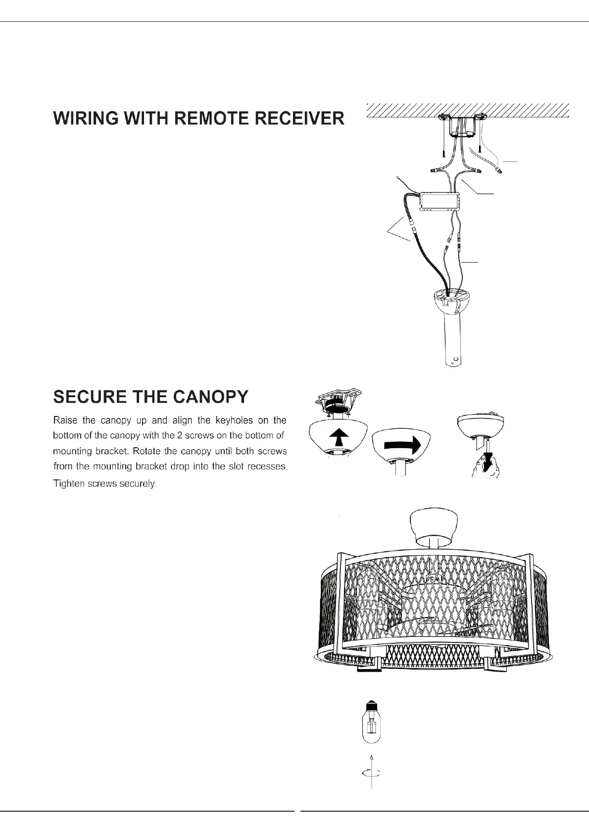 for the electrician between fan motor and light bulb.