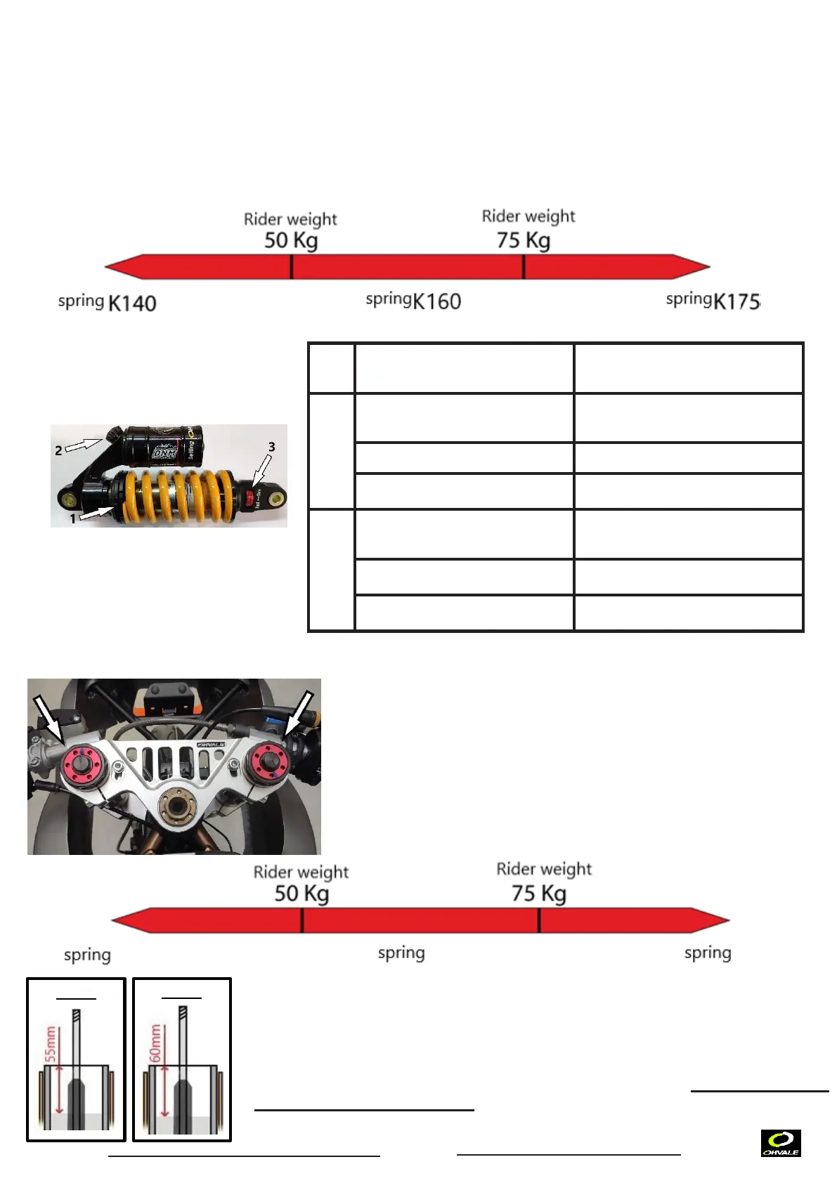 weighing less than 50Kg. The standard springs are K 7/7.