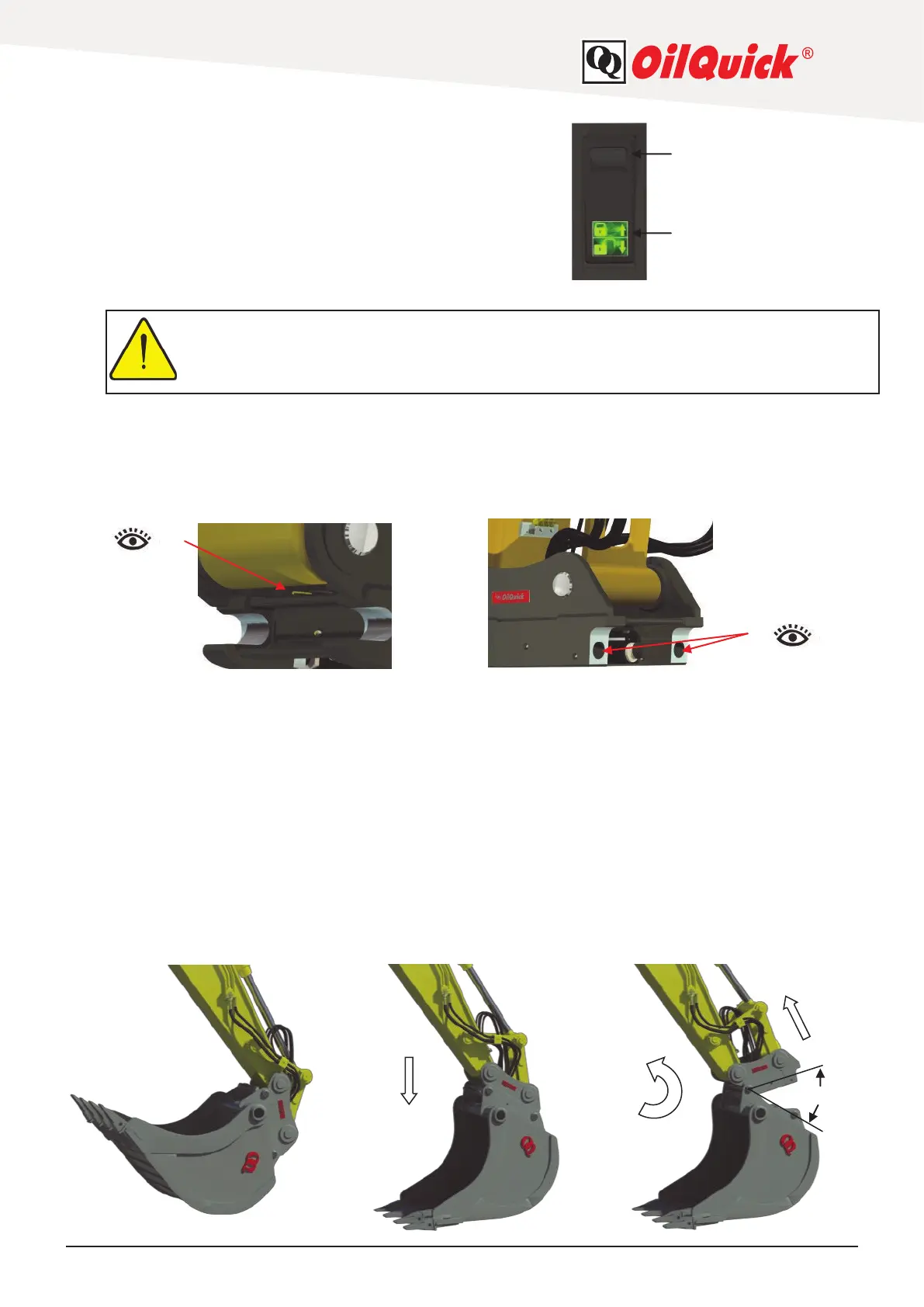 Open the quick coupler by pressing the lock switch. The warning light comes on and the alarm sounds.