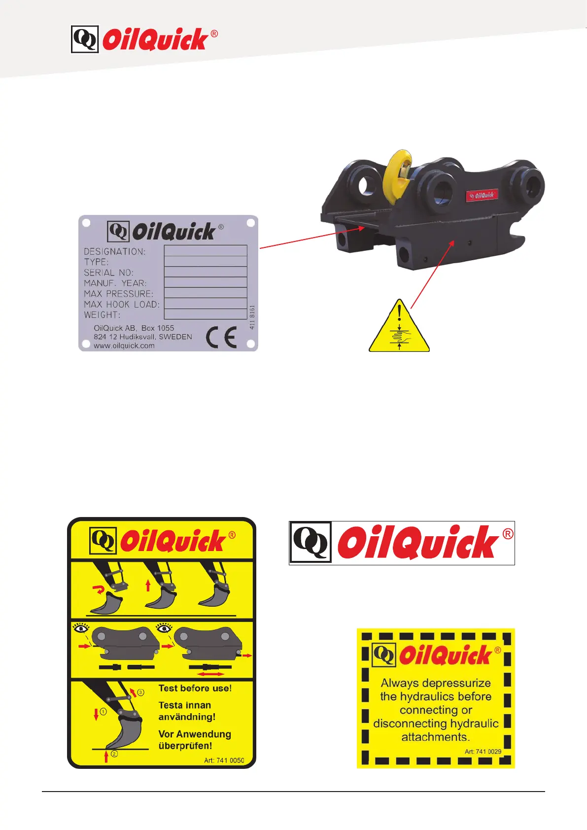 OilQuick OQ 80 - 15 Troubleshooting; Plates and Stickers
