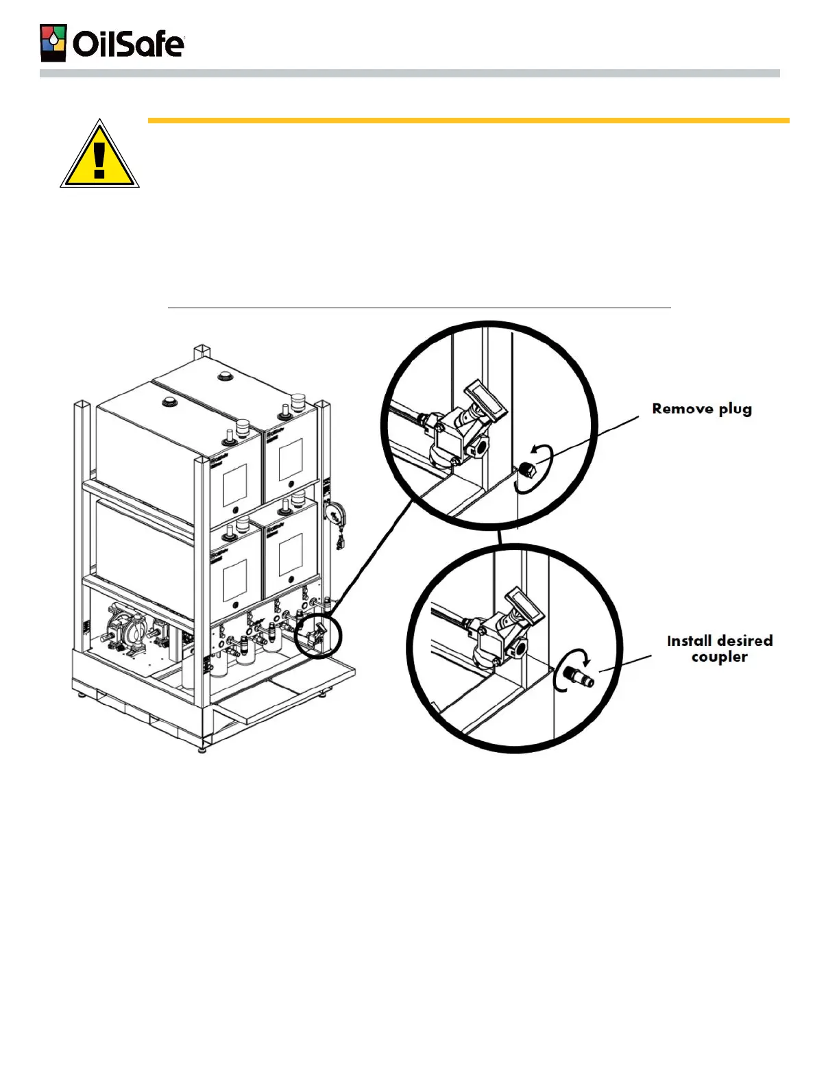 STEP 2. Fasten the desired coupler into the front ½” female NPT port on the inlet air valve at the front of the system.