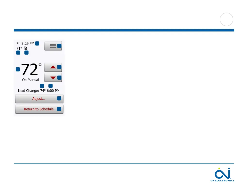 11. Tap here to return to Scheduled Operation. Available only when the thermostat is