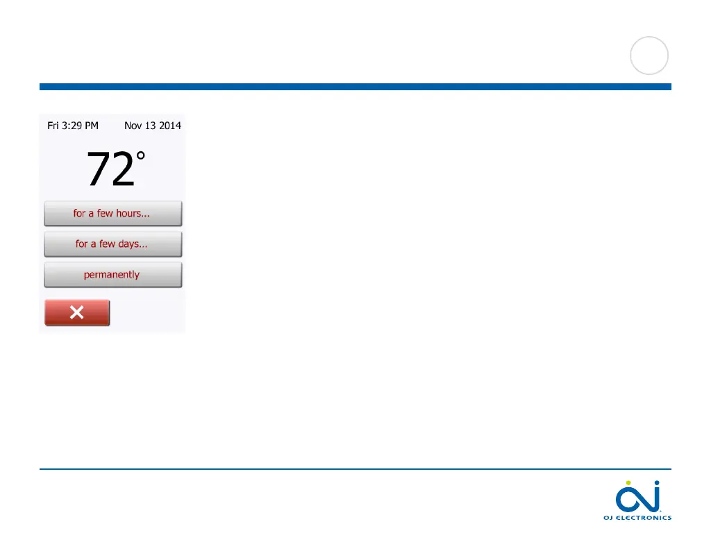 target temperature/setpoint should last. When the set time period has elapsed, the