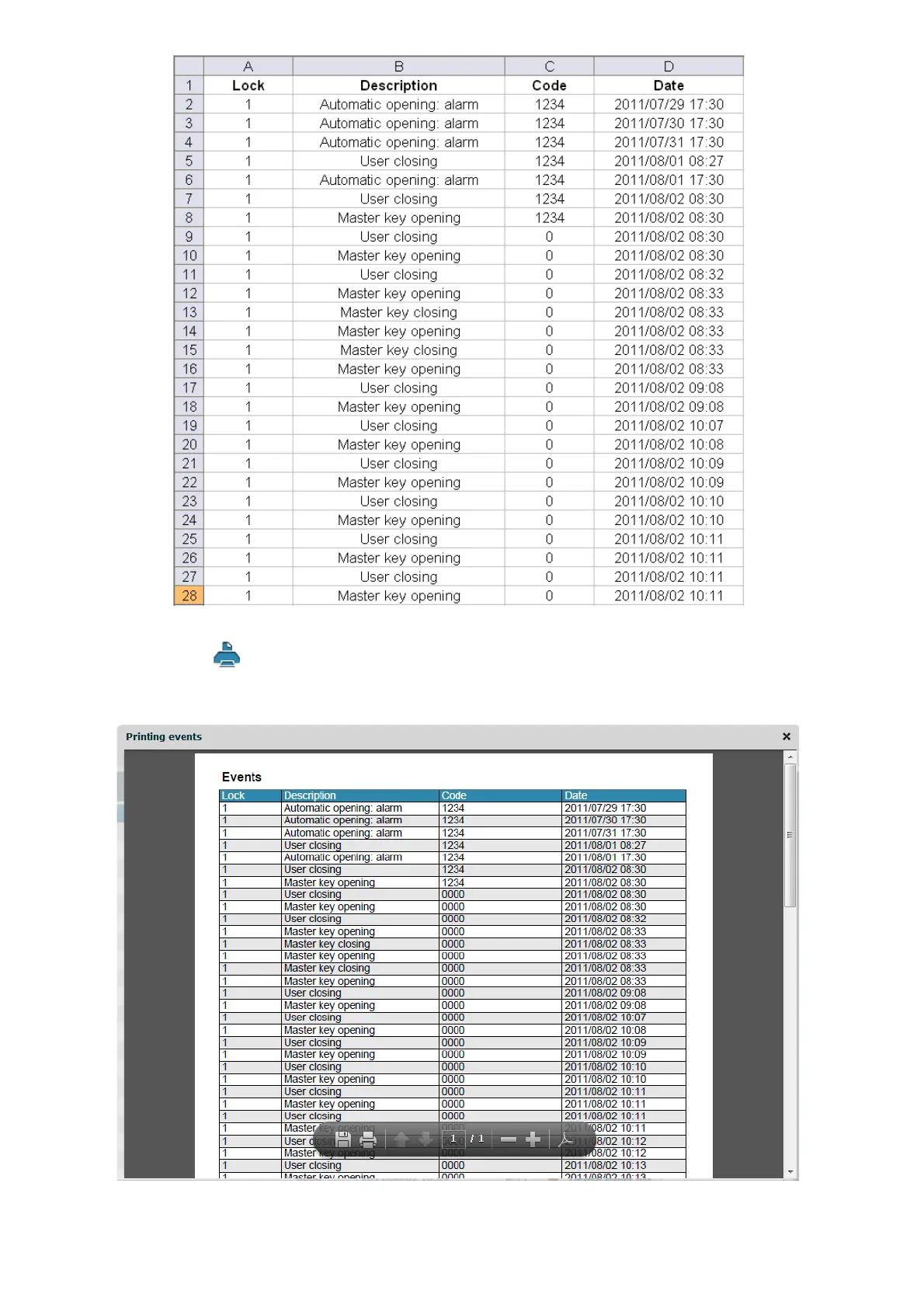 Figure 3.16.- Events exported to a pdf format The application allows saving or printing them.