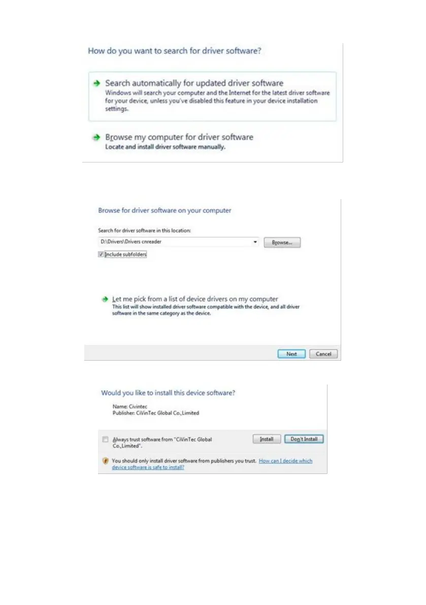 8. Click on “Browseand locate the “CnReader Drivers” folder on the CD supplied
