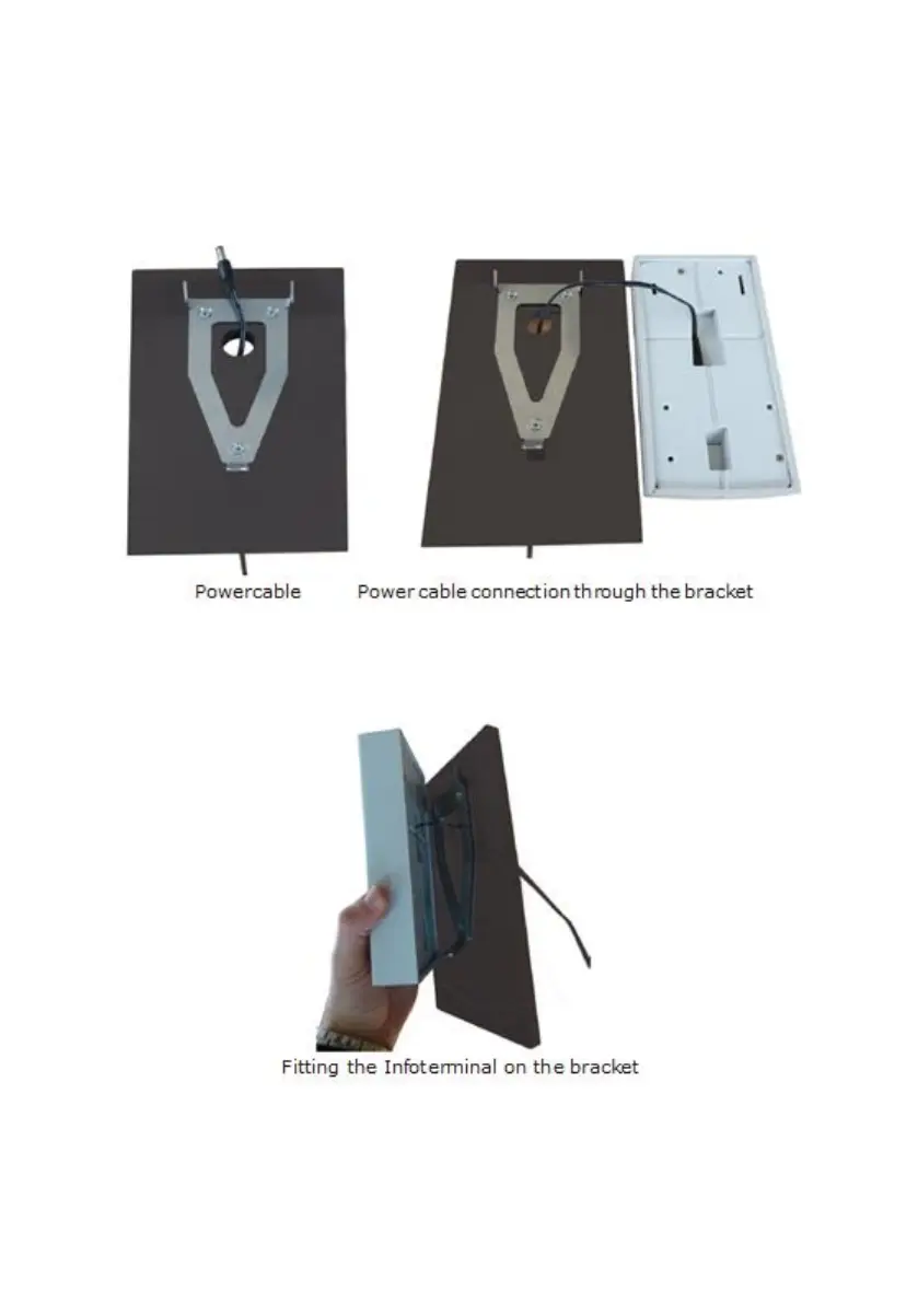 3. Once the power cable is connected to the Infoterminal, fit it on the bracket. To