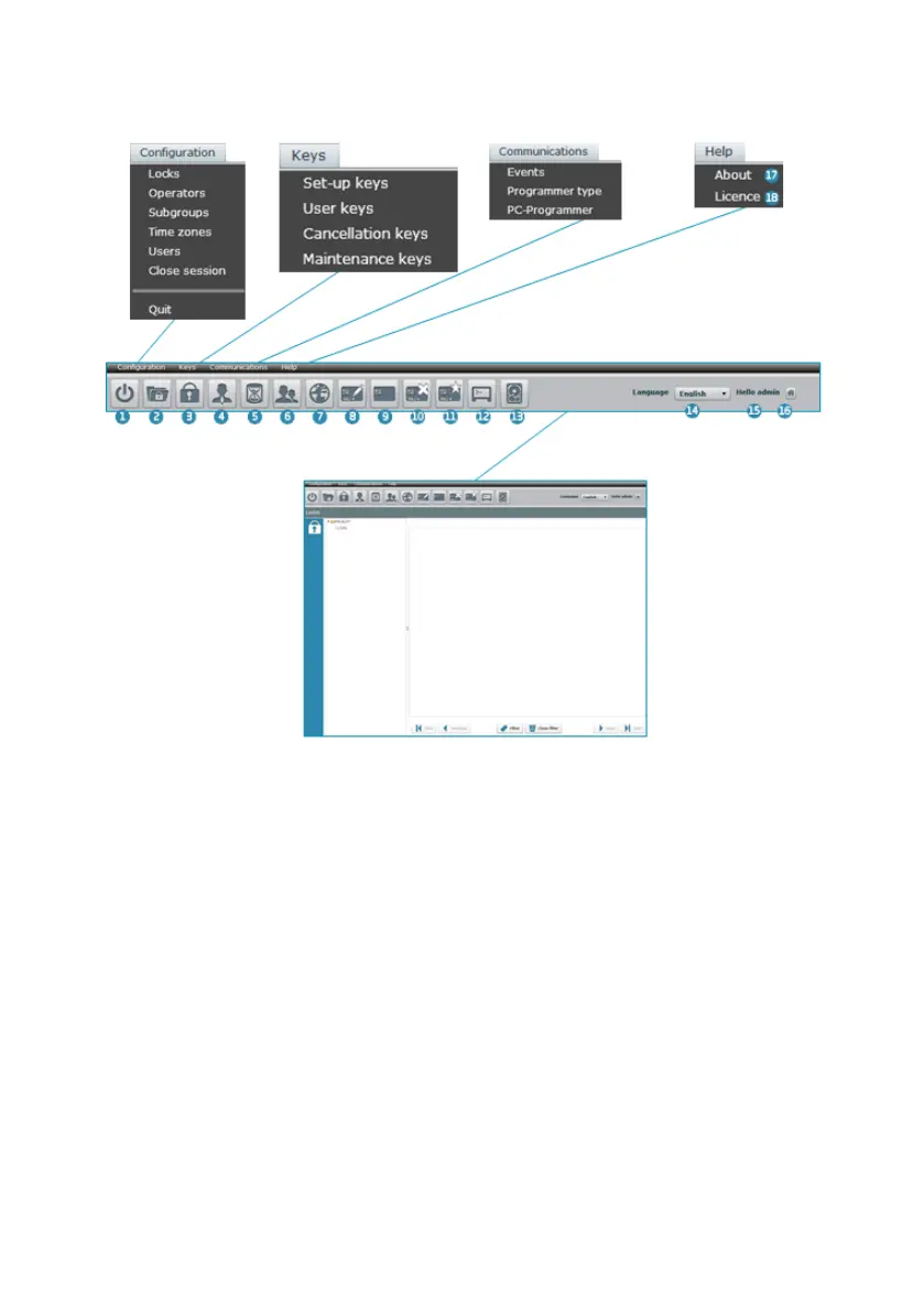 NOTE: The main screen displays the locks screen by default (3). See Section 4.6.
