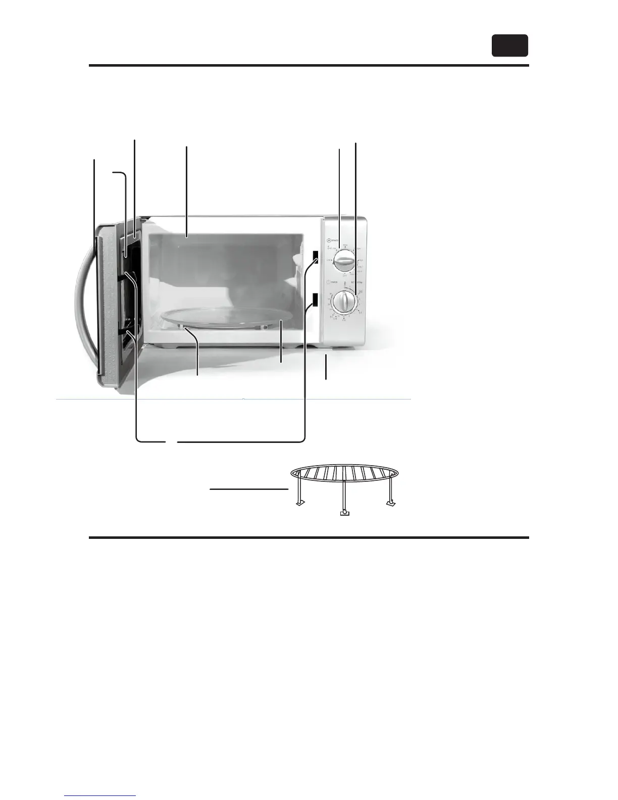 Mikrowellenherdes und der Gerätetür befinden, und dass sich keine