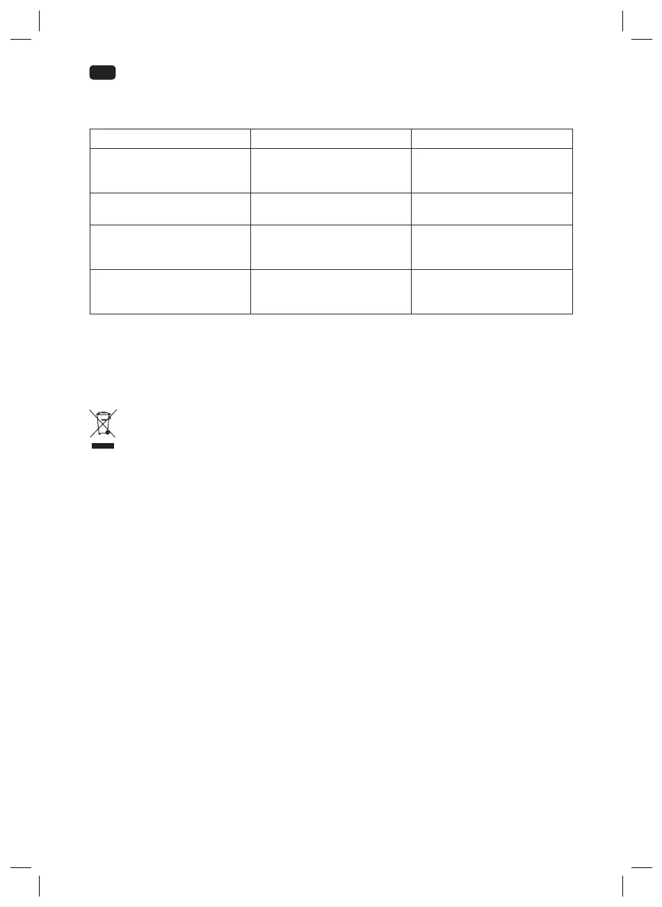 If there are any problems during operation, please refer to the following table. If problems cannot be