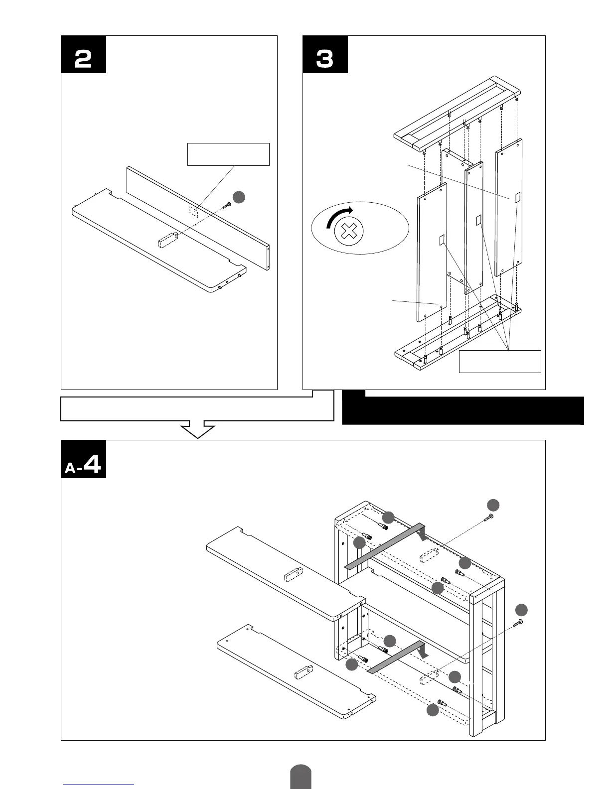 desk side panel, install the bookshelf and securely tighten the screw-type con-