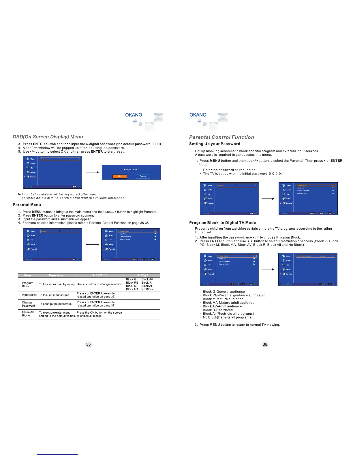 Okano LTV3201C - Parental Control Function; Password, Program, and Input Blocking