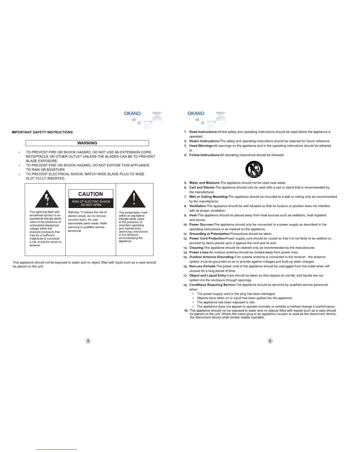 Okano LTV3201C - Important Safety Instructions
