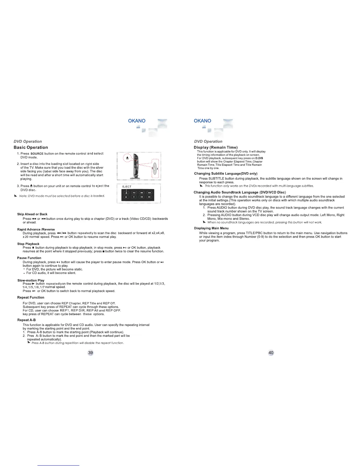 Okano LTV3201C - DVD Operation; Display; Changing Subtitle Language; Changing Audio Soundtrack Language
