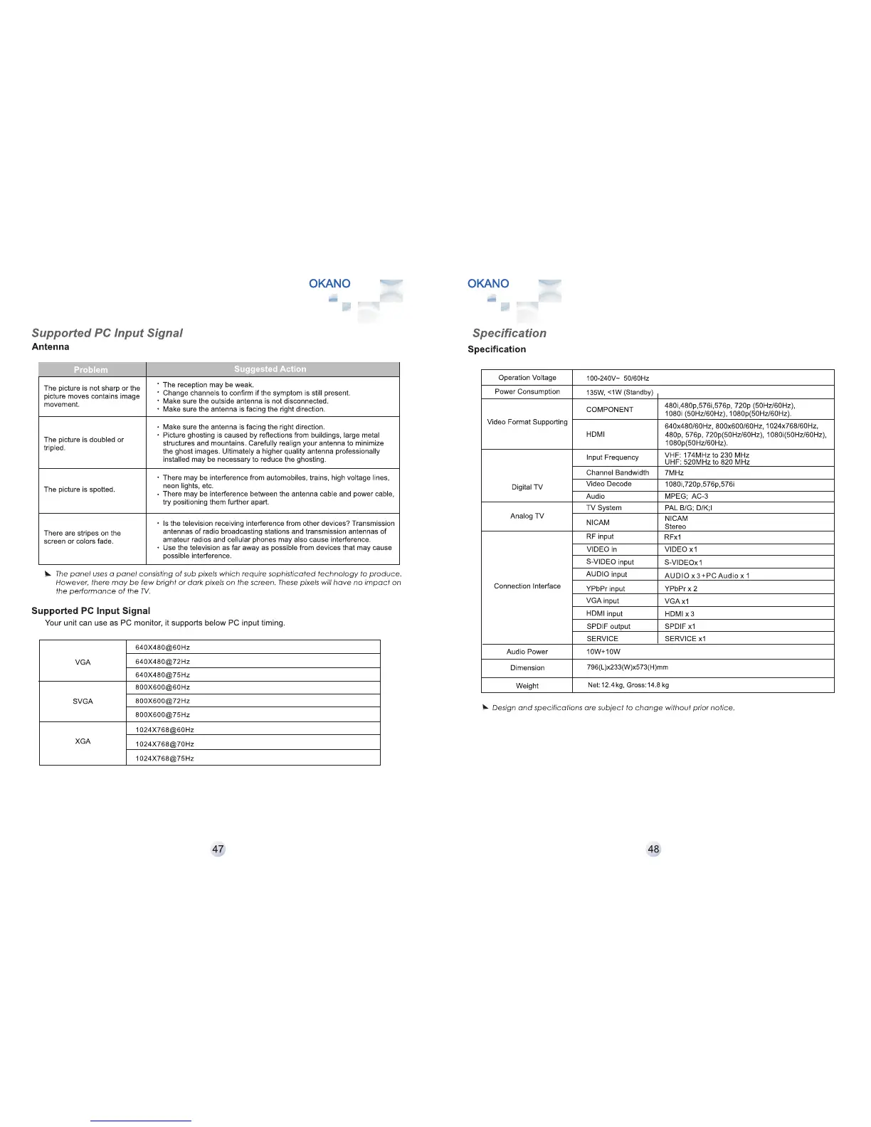 Okano LTV3201C - Troubleshooting and Specifications; TV Unit Troubleshooting Guide