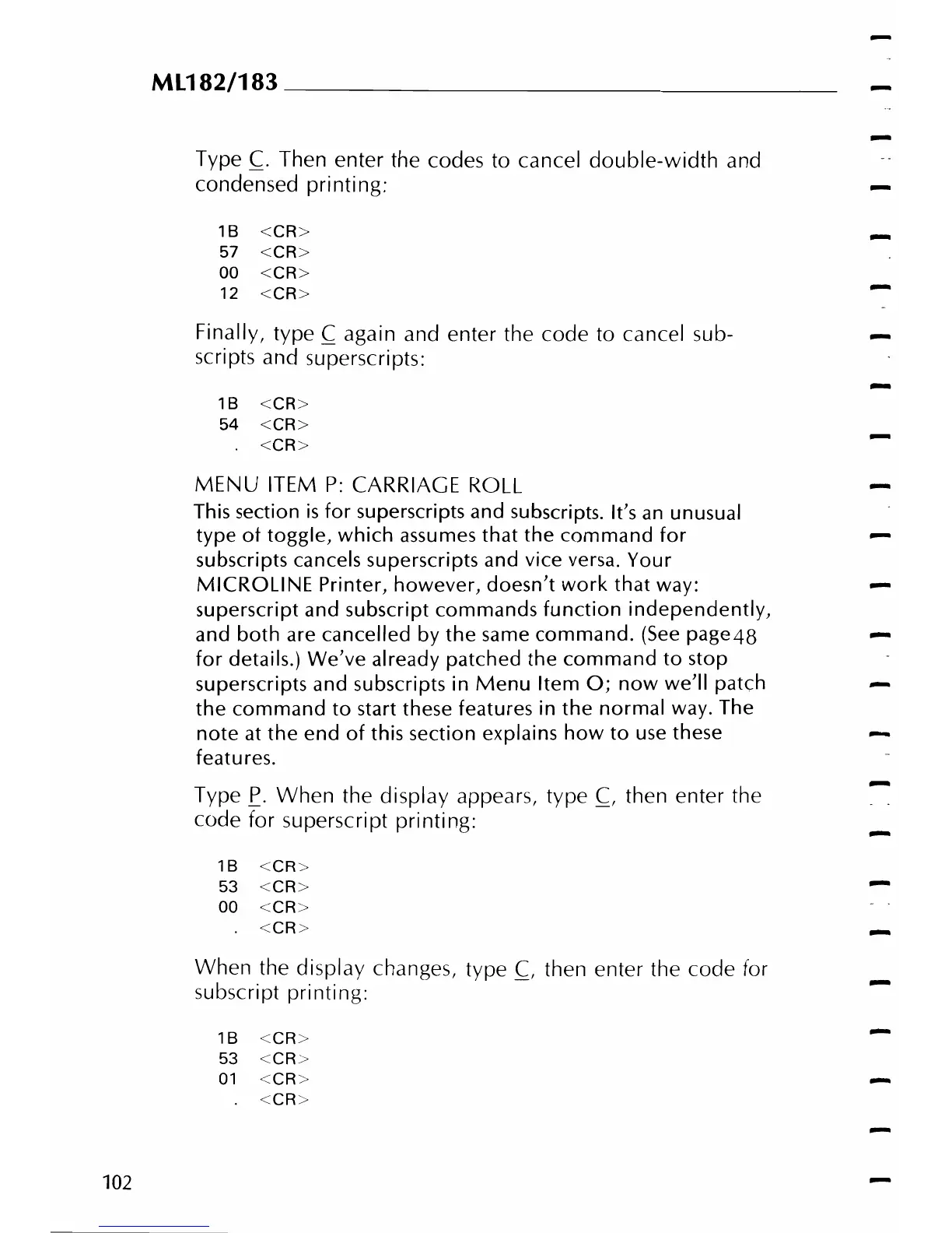 code for superscript printing: