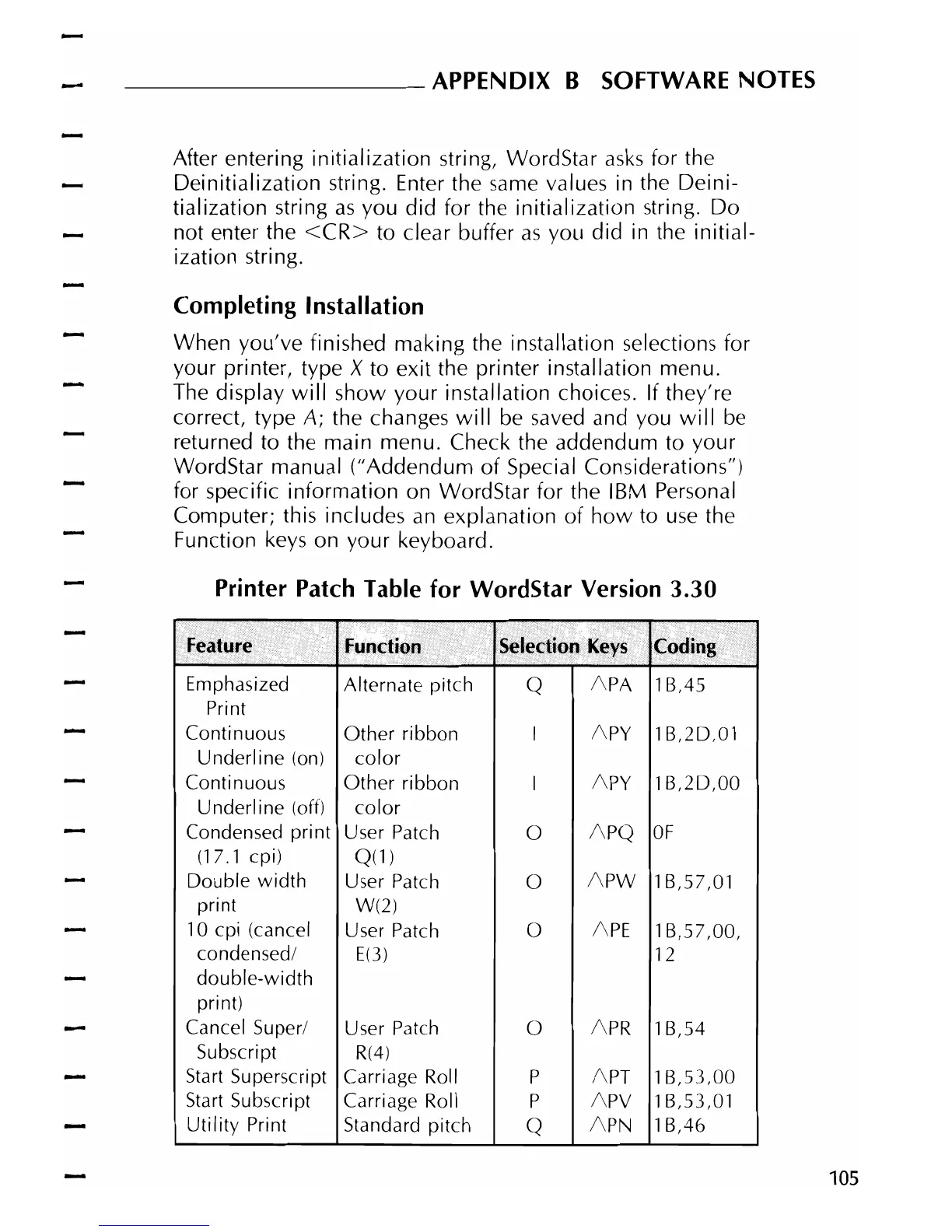 Printer Patch Table for WordStar Version 3.30