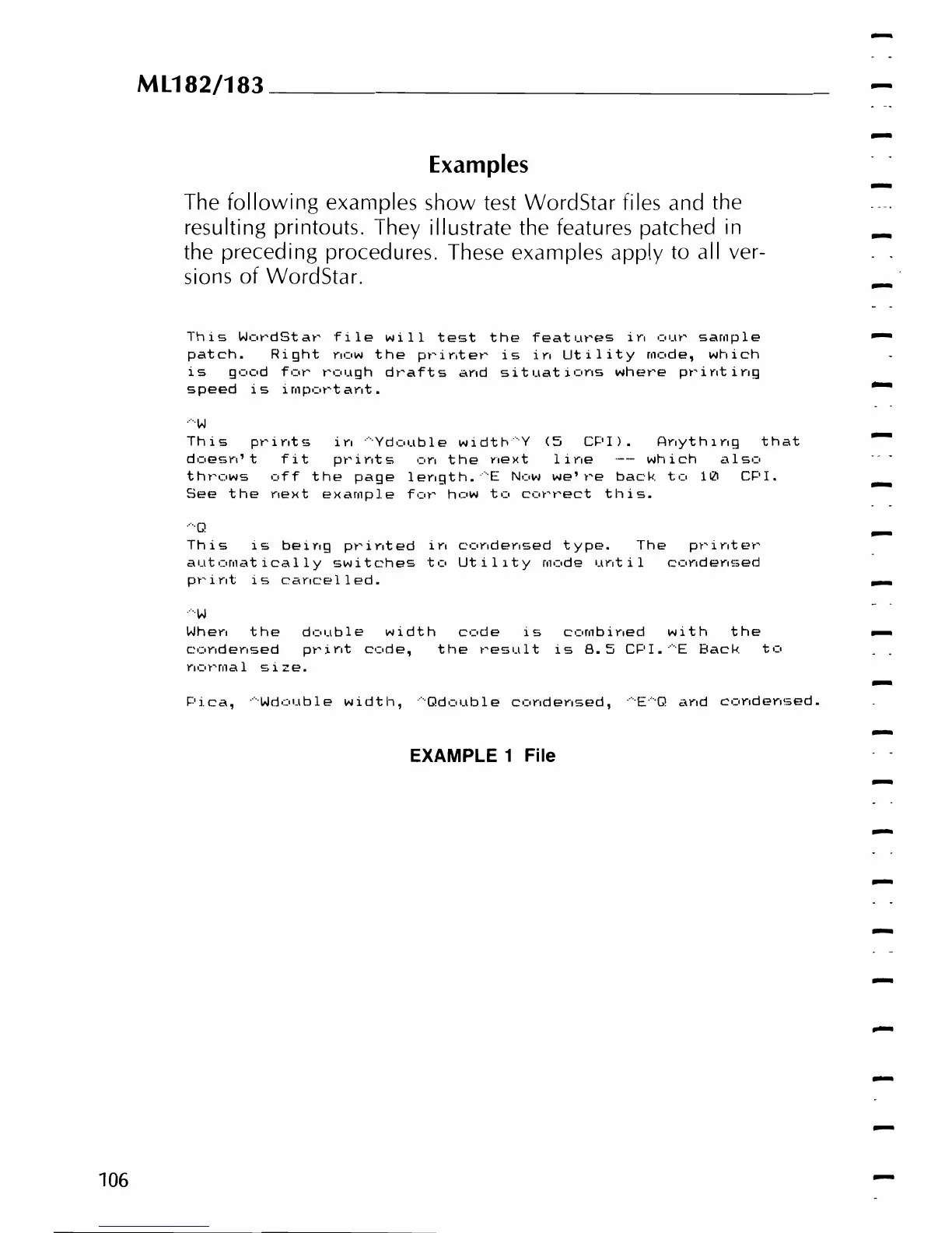 examples show test WordStar files and the