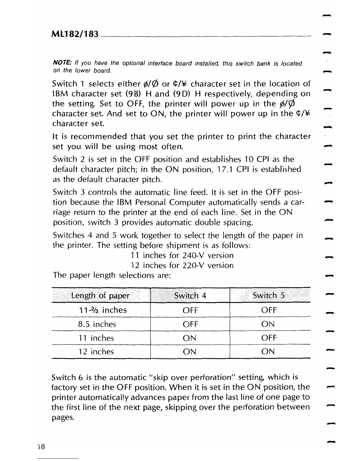Switch 3 controls the automatic line feed. It