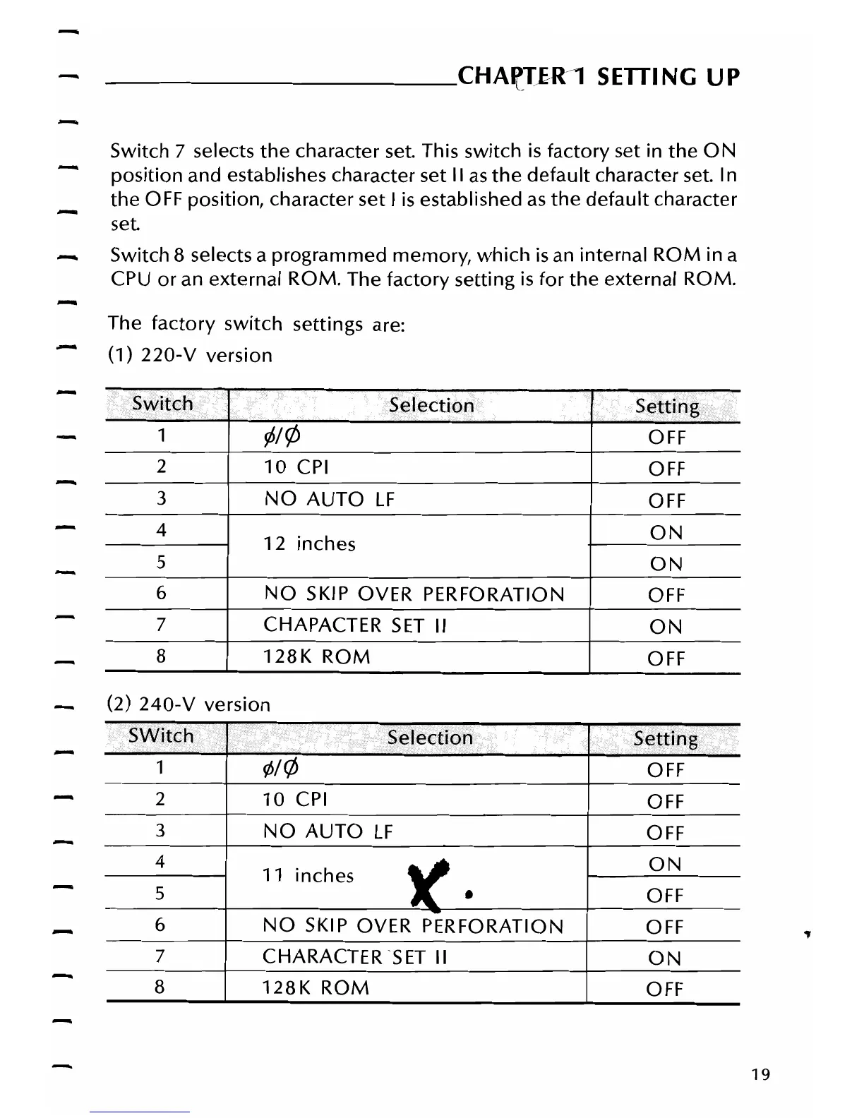 character set. This switch