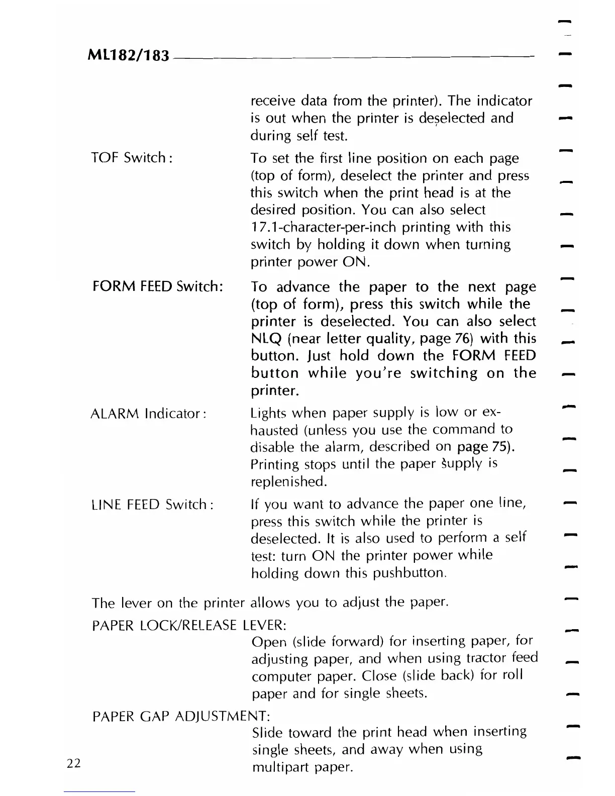 adjusting paper, and when using tractor feed