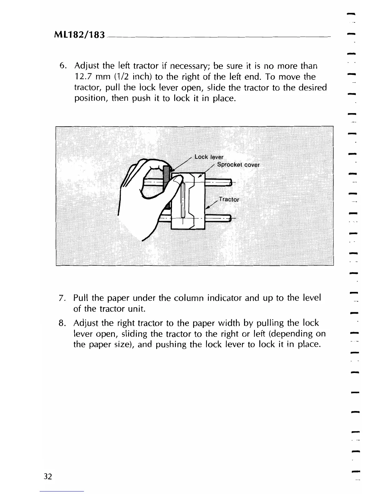 Adjust the right tractor to the paper