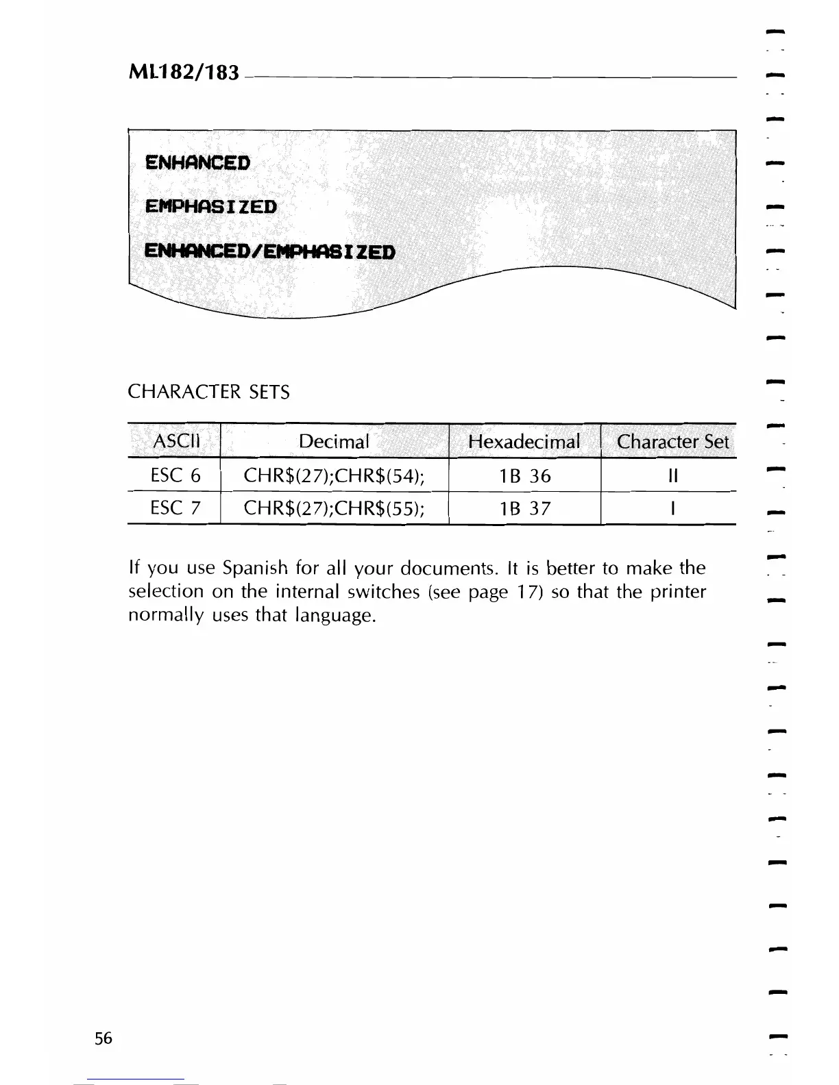Oki 182 - Character Sets