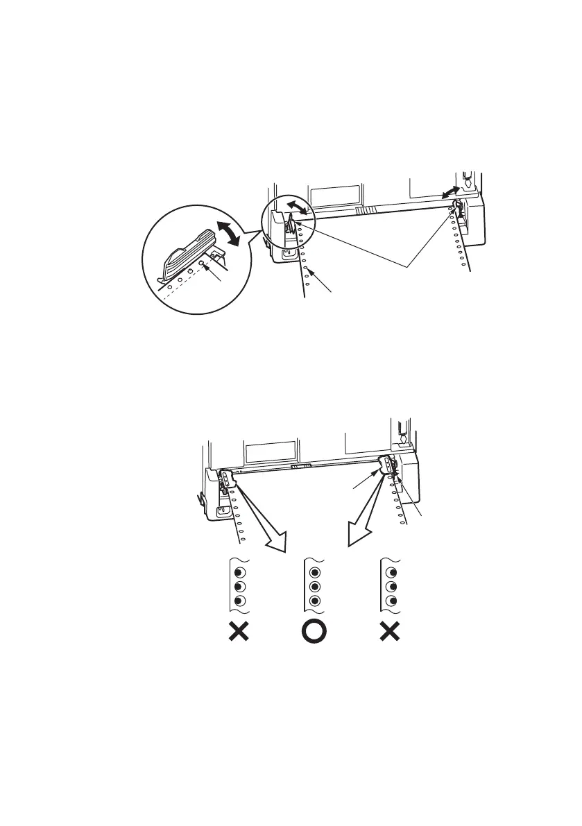 6. Open the left and right Pin Tractor covers (1) and feed the con-