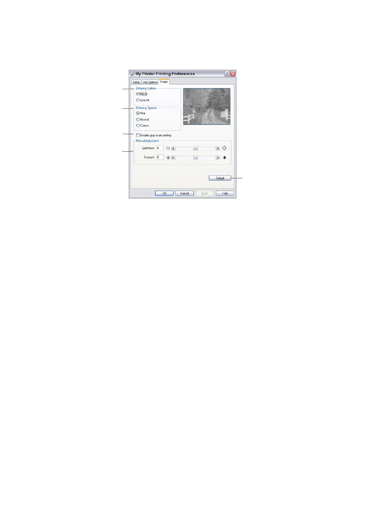 3. Set this control to print greyscale effects in black without dithering. Select the