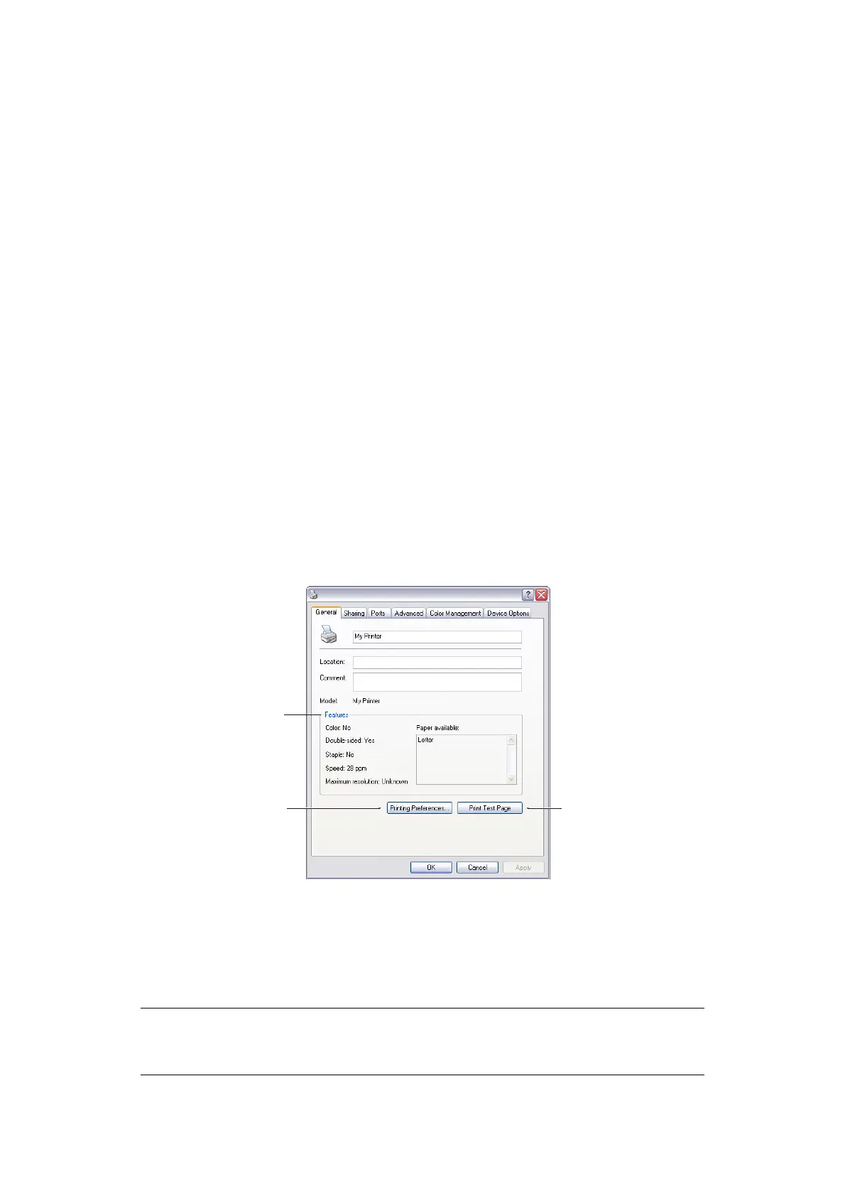 3. This button prints a test page to ensure that your printer is working.