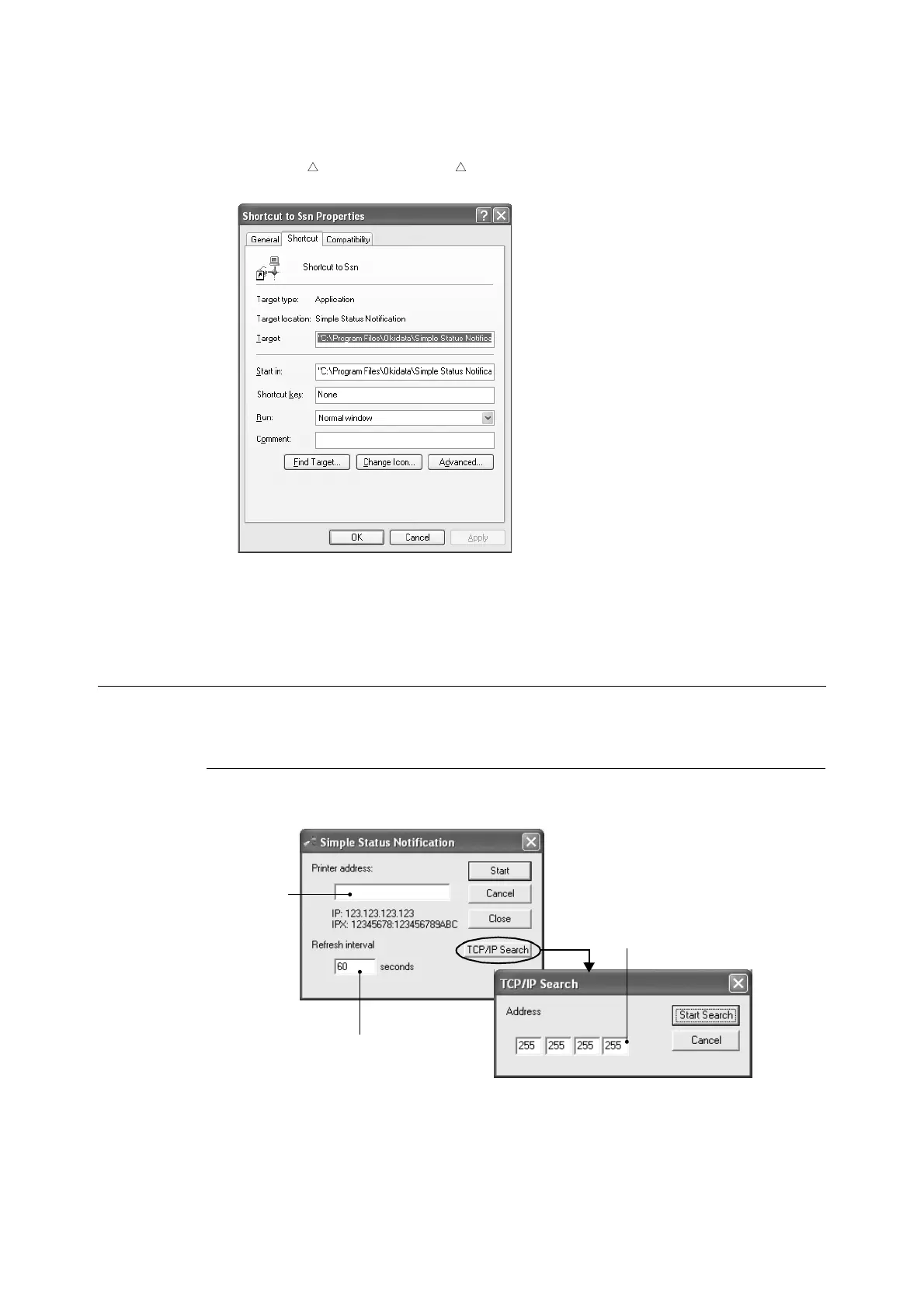 Example: “C:\Program Files\Okidata\Simple Status Notification\