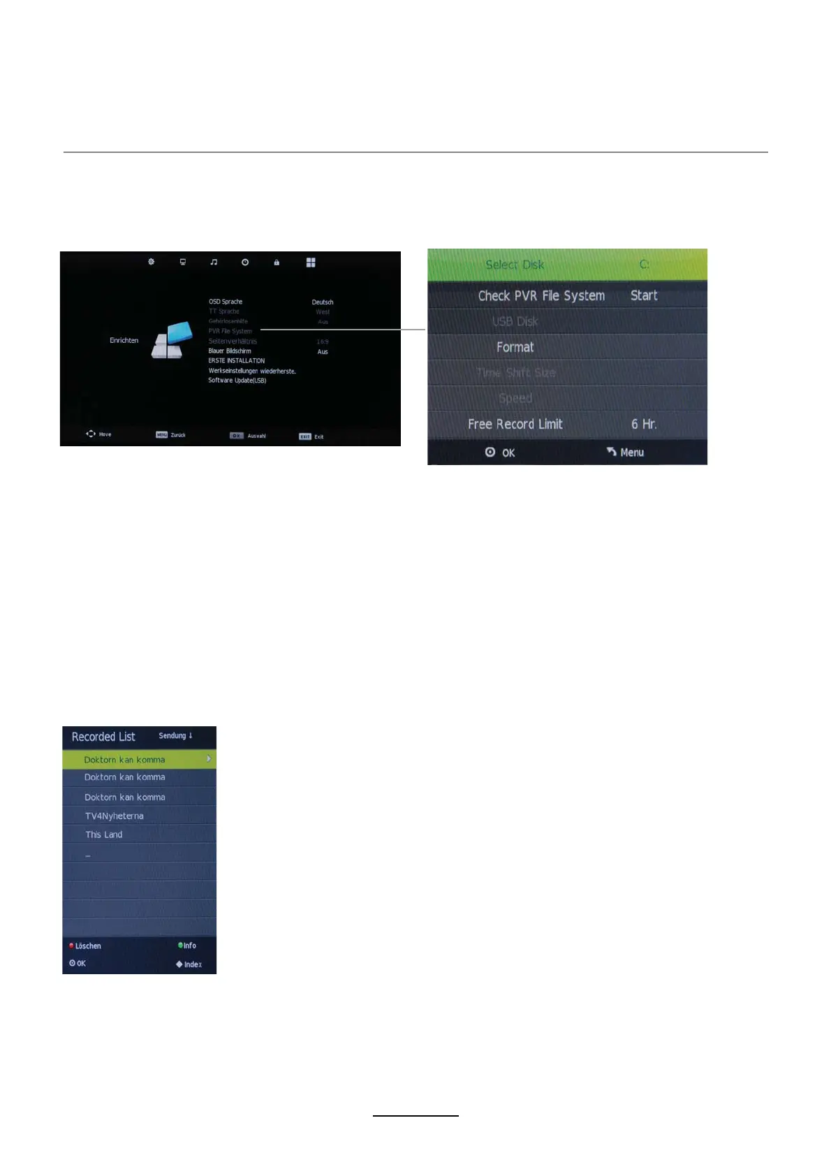 Formatieren: USB-Speichermedium für PVR-Betrieb formatieren.